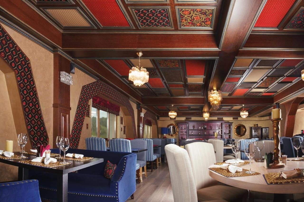 يتميز مطعم "رويال" بديكور أنيق يُشبه المتاحف والمعارض الفنية. تُطل نوافذه البانورامية على الجبال، وتُقدم قائمة الطعام أطباقًا روسية وأوروبية وحتى آسيوية. هنا، يُمكنك الاستمتاع بأطباق تُرضي جميع الأذواق، من حساء البورش الكلاسيكي إلى محار البحر الأبيض المتوسط. تُقدم الحانة ذات الطراز الإنجليزي مجموعة واسعة من النبيذ والبيرة والكوكتيلات المميزة.