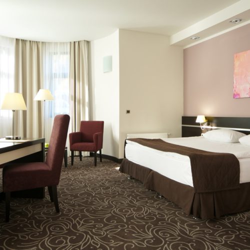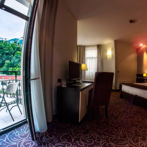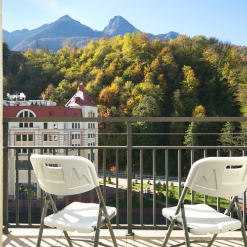 يقدم الفندق مجموعة متنوعة من الغرف بتصميمات داخلية عصرية. تتوفر غرف صغيرة تتسع لشخص أو شخصين، وبعضها يضم غرفة معيشة منفصلة. جميع وسائل الراحة اللازمة لإقامة مريحة: خزنة، تكييف هواء، تلفزيون، واي فاي، ميني بار، وغيرها الكثير. وتوفر النوافذ إطلالات خلابة على جبال القوقاز.