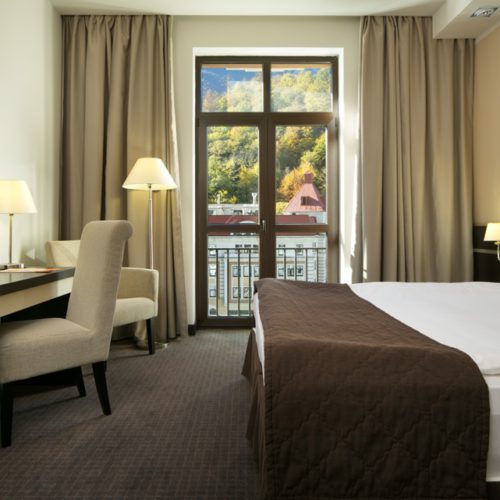 تتميز هذه الغرفة بسريرين مفردين. تصميمها الداخلي العصري، وأثاثها عالي الجودة، وألوانها الهادئة ستأسر المسافرين. توفر النوافذ إطلالات خلابة على جبال القوقاز والنهر. يضمن لك التلفزيون مشاهدة المباريات أو المسلسلات التلفزيونية المهمة. تتوفر خزنة لحفظ مقتنياتك الثمينة. خزانة ملابس لتنظيم جميع متعلقاتك. الحمام مجهز بمستلزمات الاستحمام الأساسية، ومجفف شعر، ودش. تبلغ مساحته 27 مترًا مربعًا.