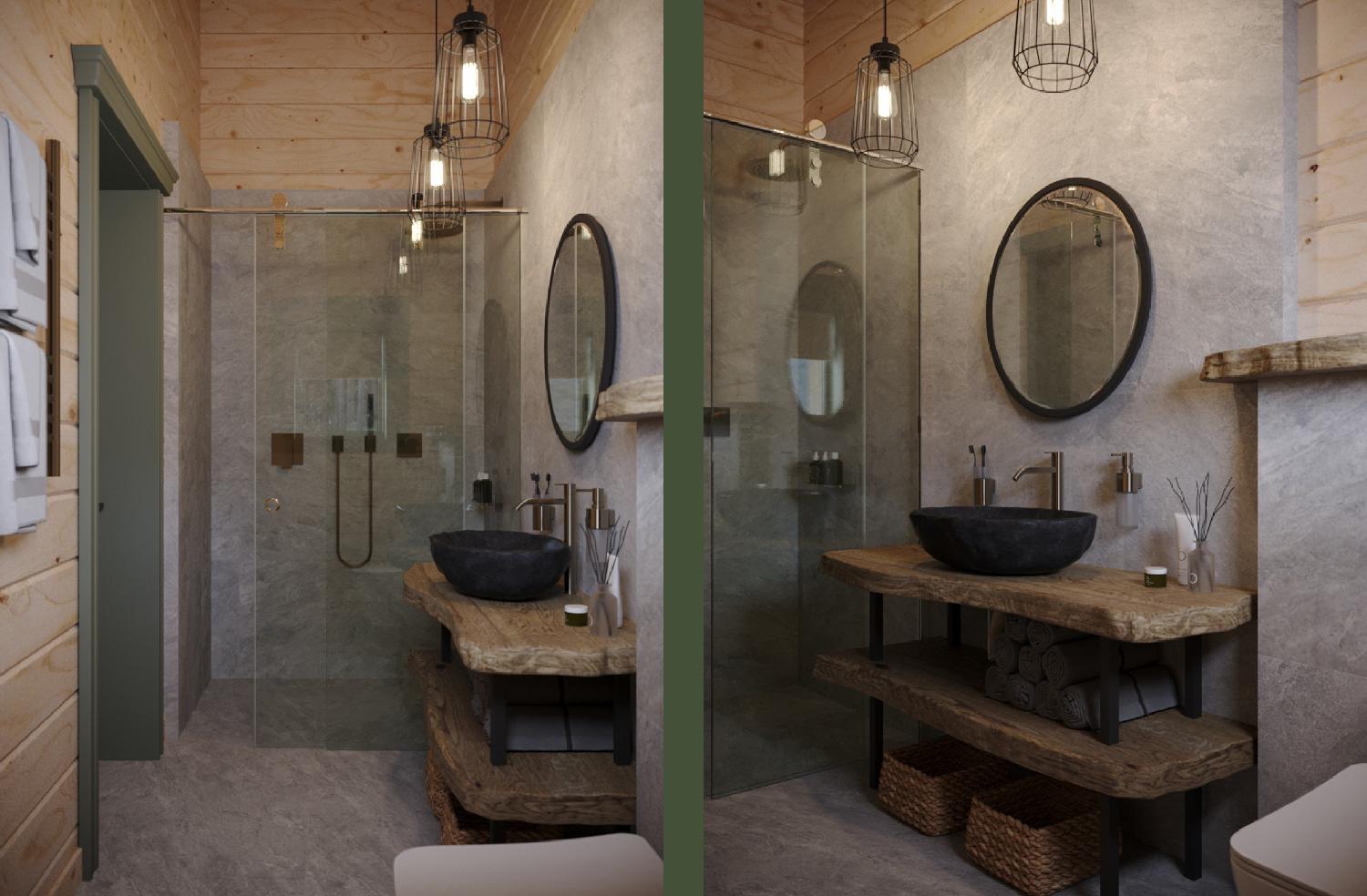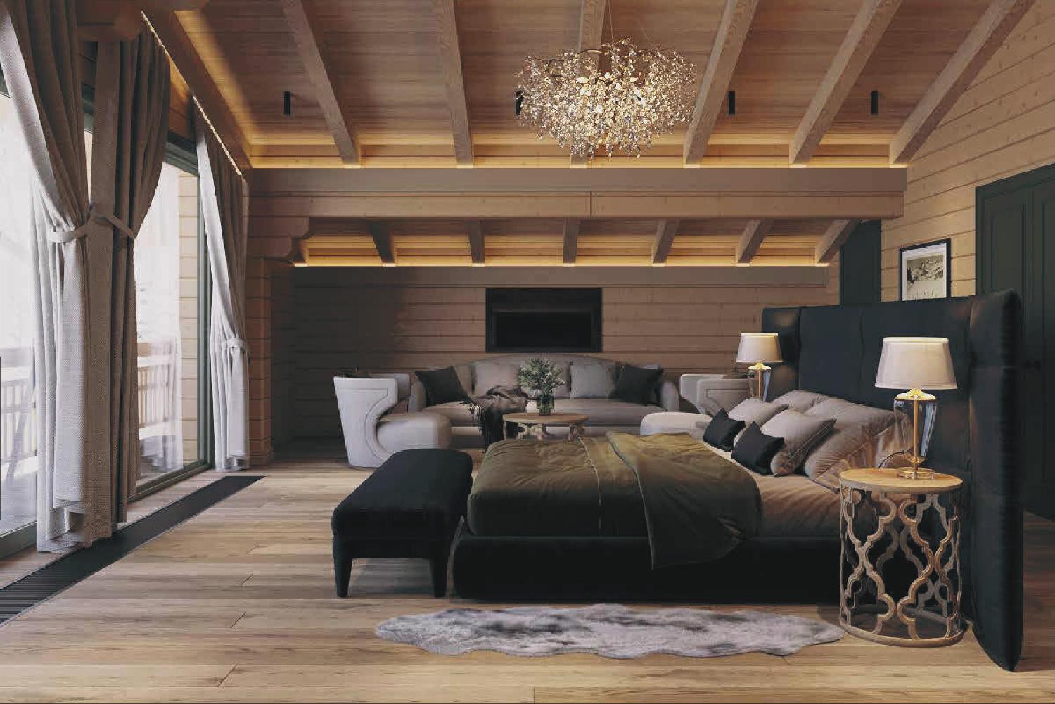 magnificent two-story house Grand Schalet River with an area of 300 m2, made of Altai cedar, with three bedrooms, a spacious living room and fully equipped kitchen.