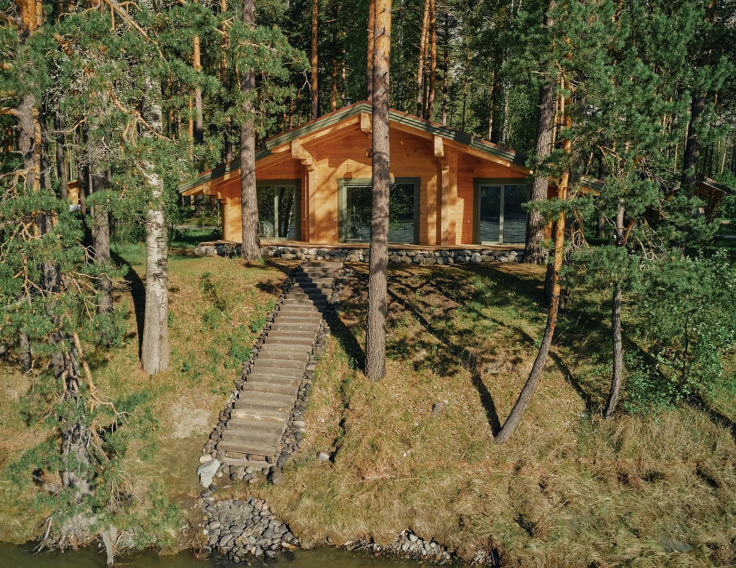 “Classic Chalet River” is a cottage made of Altai cedar on the first coastline, offering beautiful views of the surrounding nature.