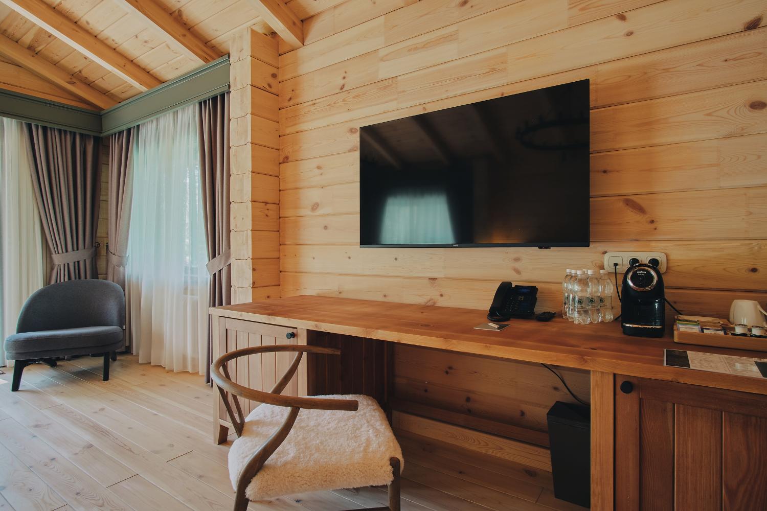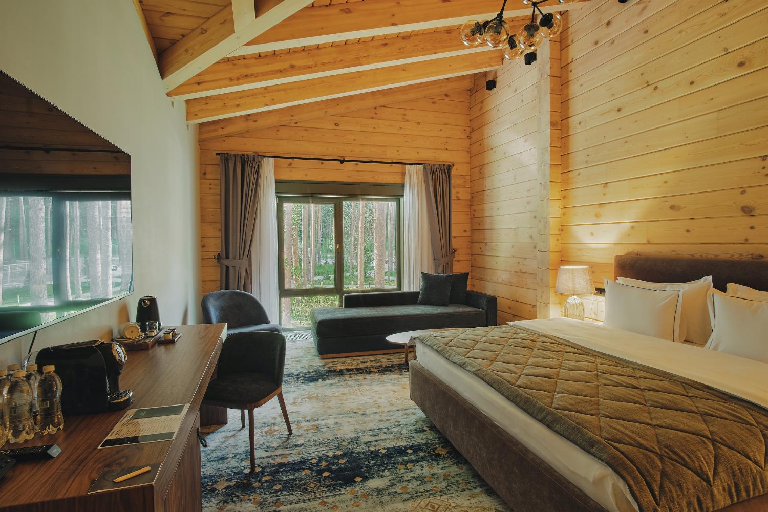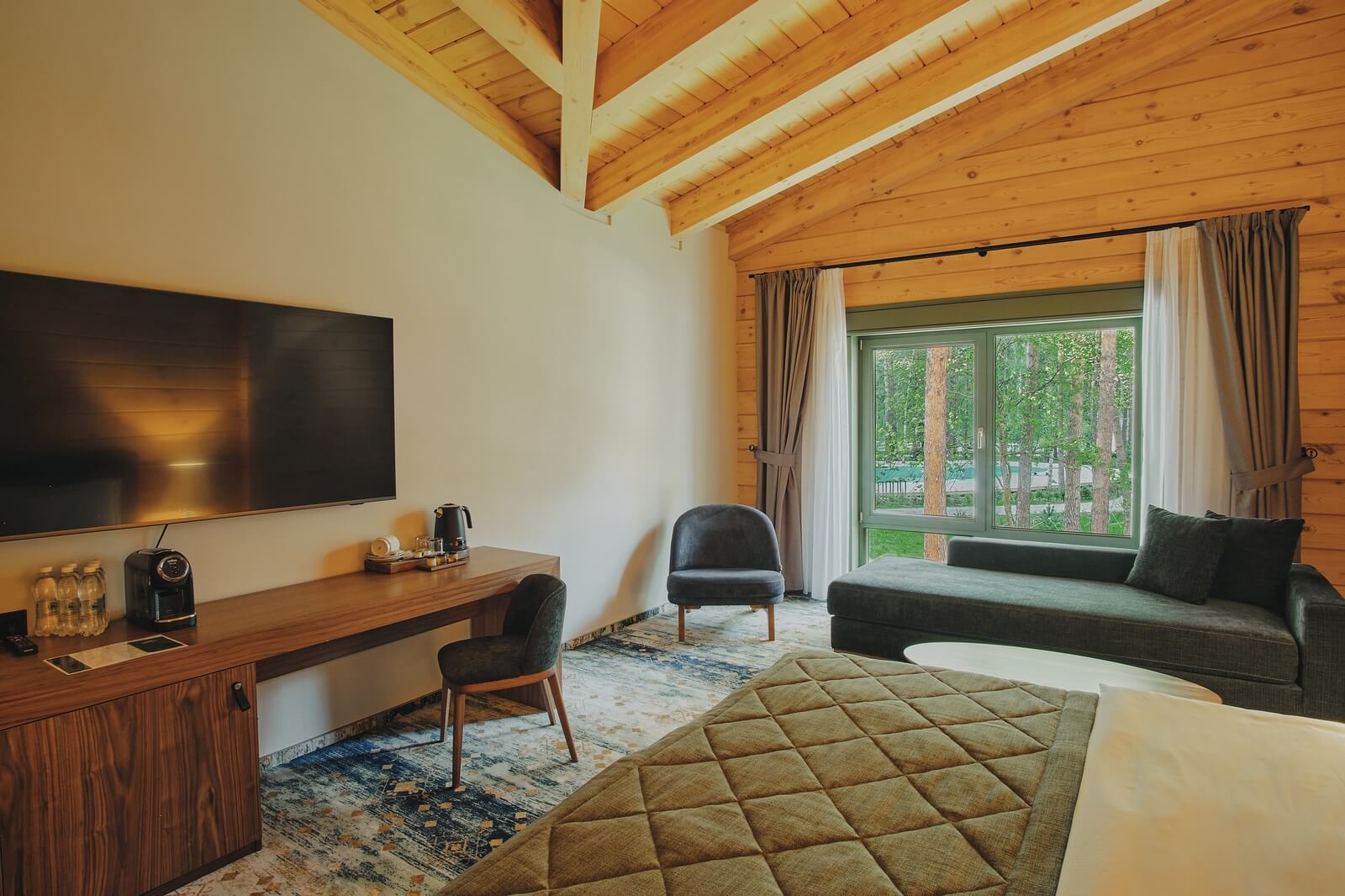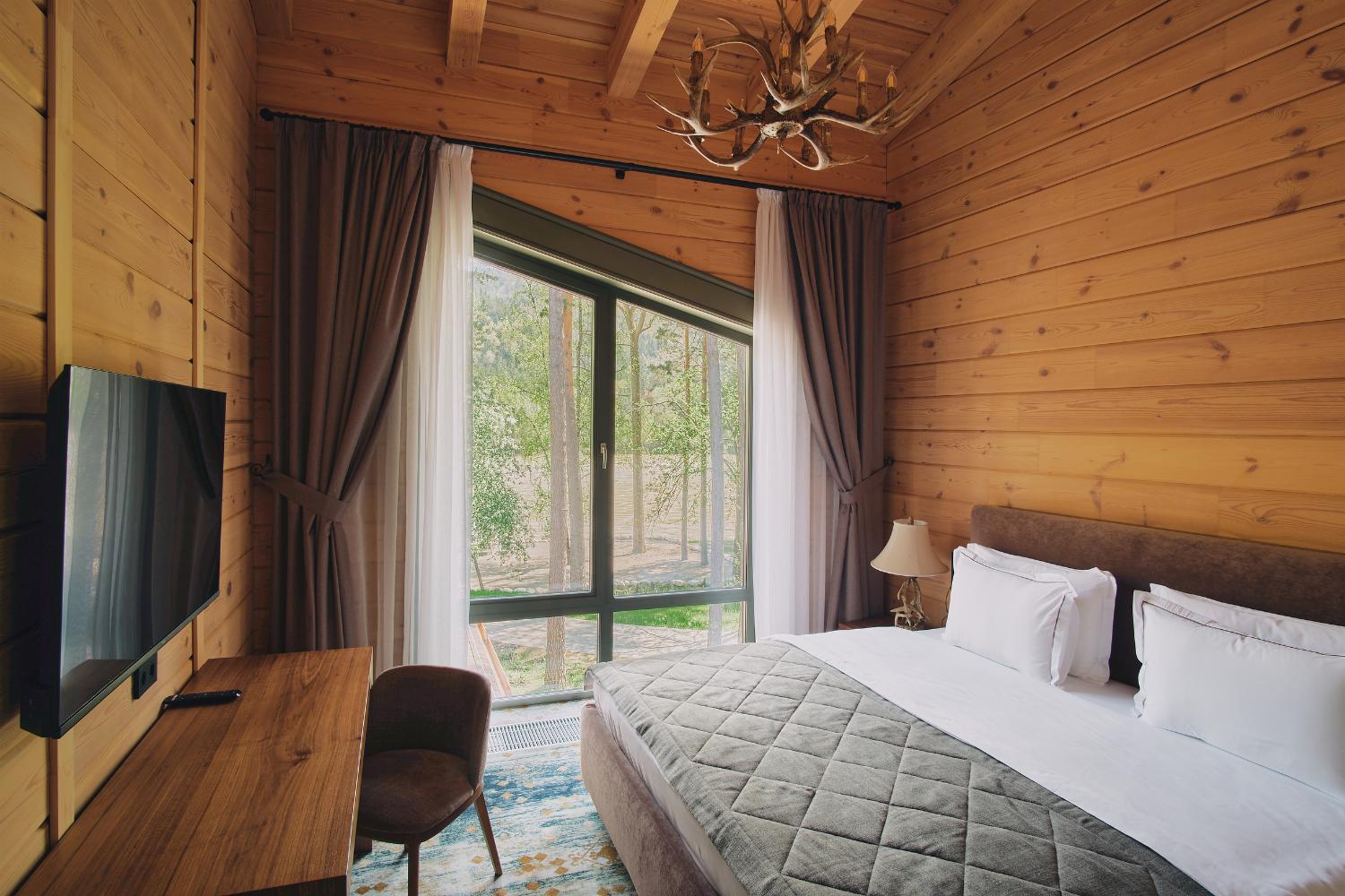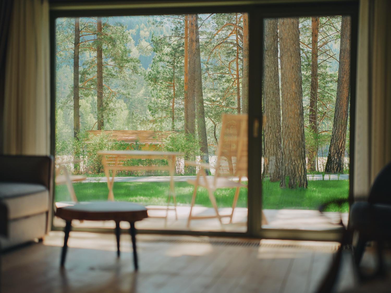 Grand Chalet Altay offers its guests comfortable rooms and chalets. The room capacity includes a two-story hotel complex with 55 rooms of various categories, including luxury suites, as well as 19 cozy chalets ranging from 42 to 300 sq.m. The interior design of all rooms and chalets is made in the style of eco-minimalism using natural wood and pastel shades. The chalets are strategically located among coniferous trees, providing guests with privacy and stunning views of the river and mountains. All rooms and chalets are equipped with premium amenities, including French L'Occitane cosmetics, high-quality bed linen, a variety of pillows, orthopedic mattresses, modern TVs with a diagonal of 55 inches, tea and coffee set, minibar, curtains with total blackout function and fast Wi-Fi -Fi. The excellent guest care service offers daily turndown service and room service is available 24 hours a day.
