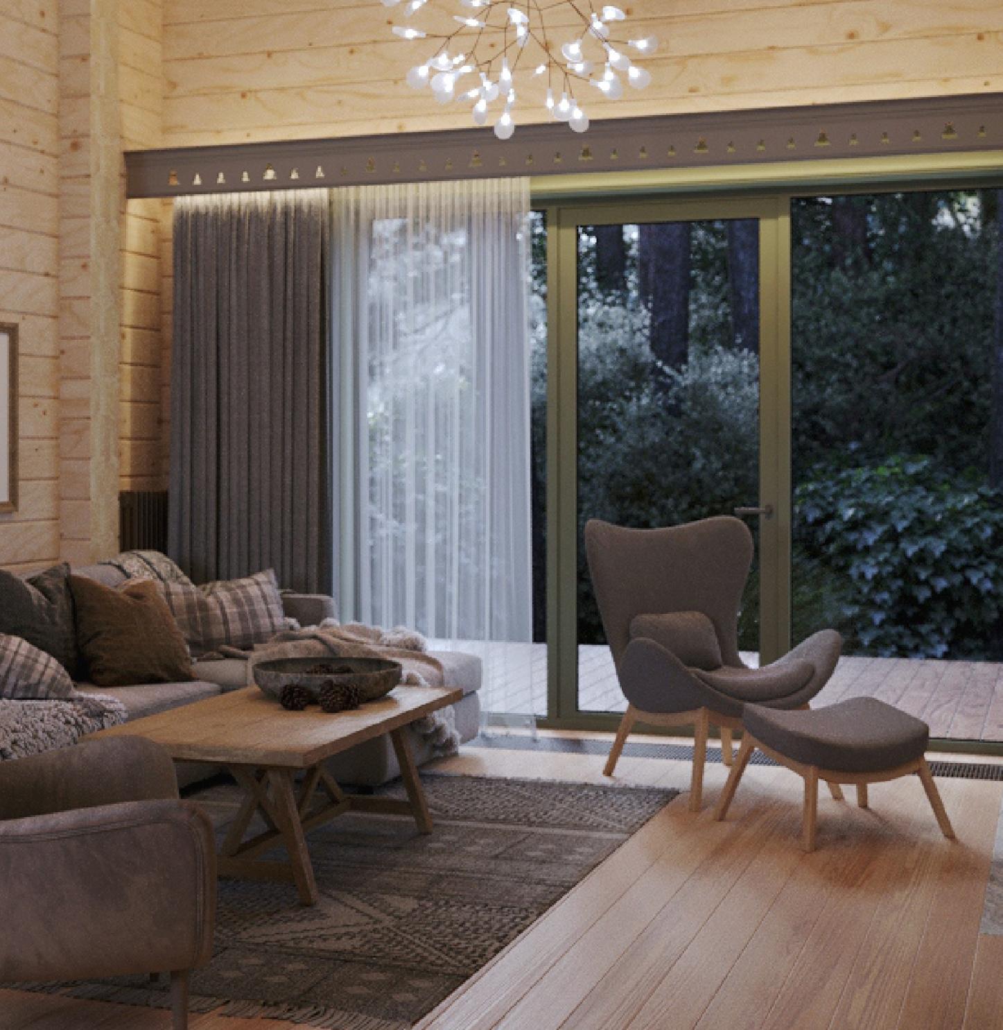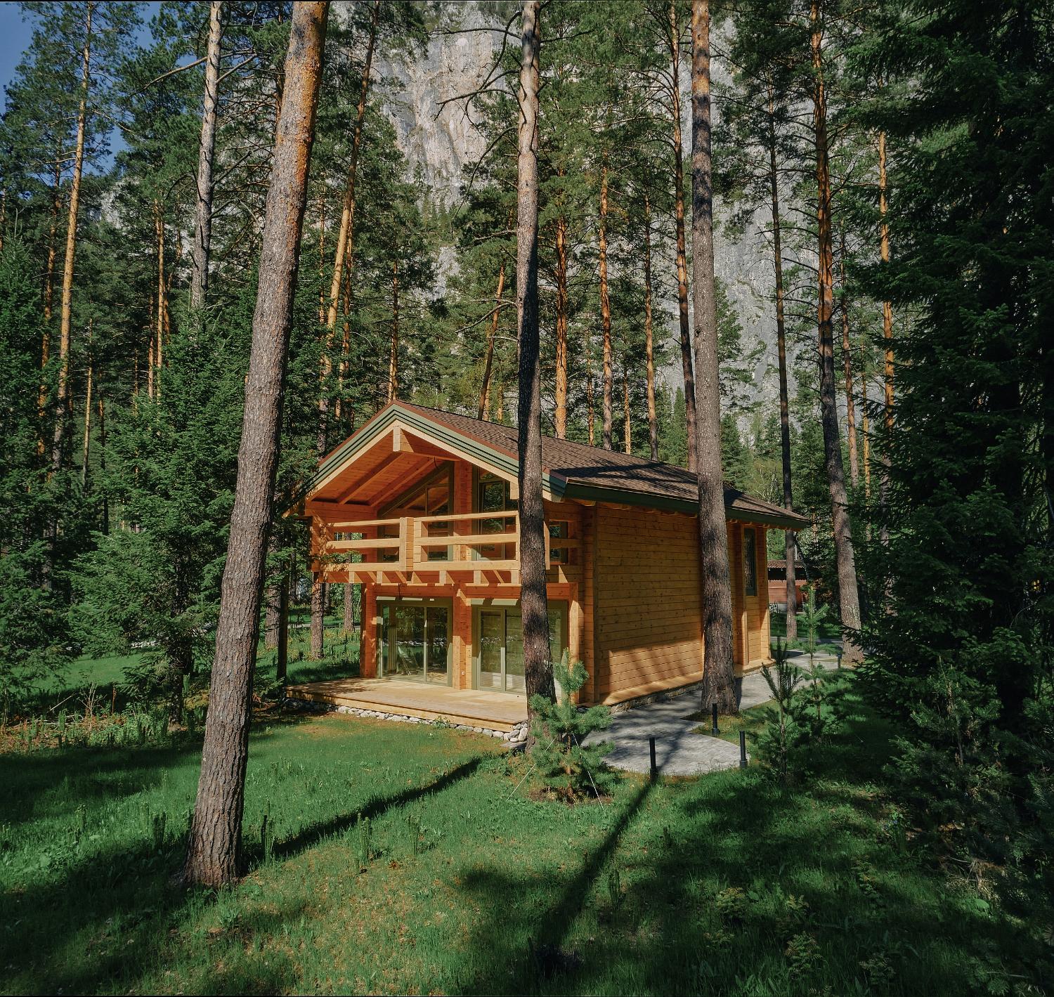 “Classic Chalet” is a cozy cottage made of Altai cedar with a bright interior and panoramic windows.