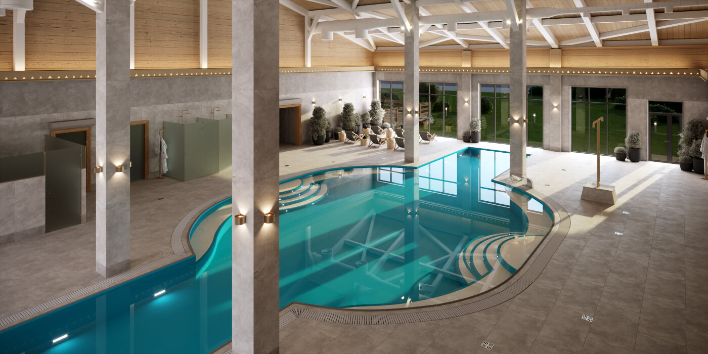 One of the main features of the resort is its huge outdoor heated swimming pool with an area of 800 sq.m. with a cascading waterfall and hydromassage systems, as well as a sunbathing area and a summer bar. For younger guests there is a separate heated children's pool, attractions and slides. Also on the territory of the resort there is an ecological children's playground in the open air and a special chalet made of natural wood, where experienced animators take care of the entertainment and educational pastime of children.