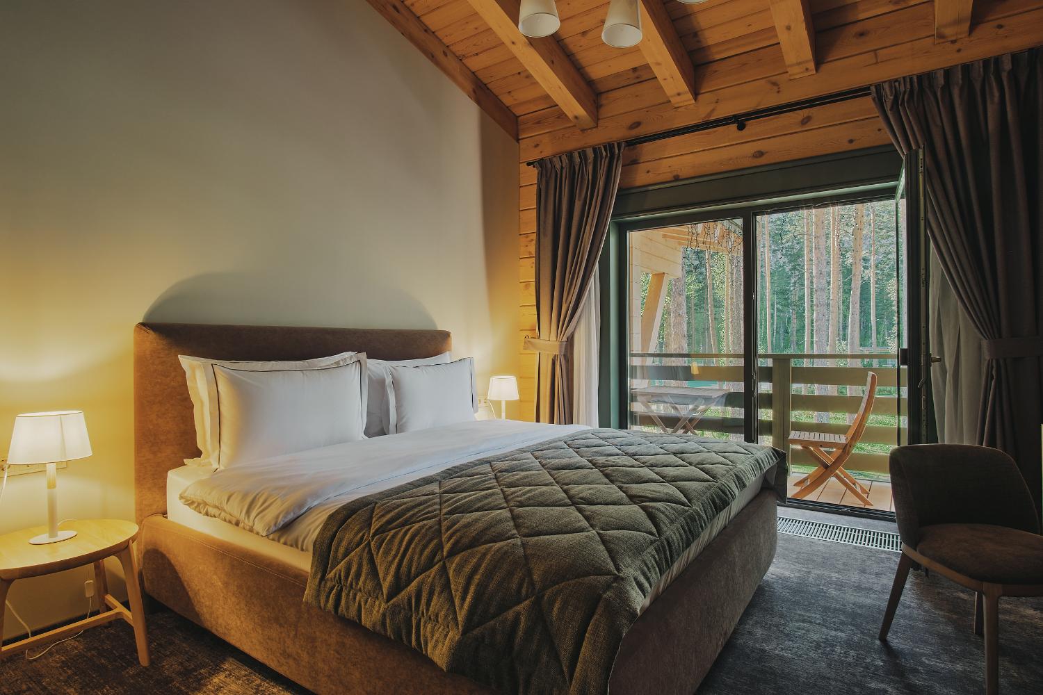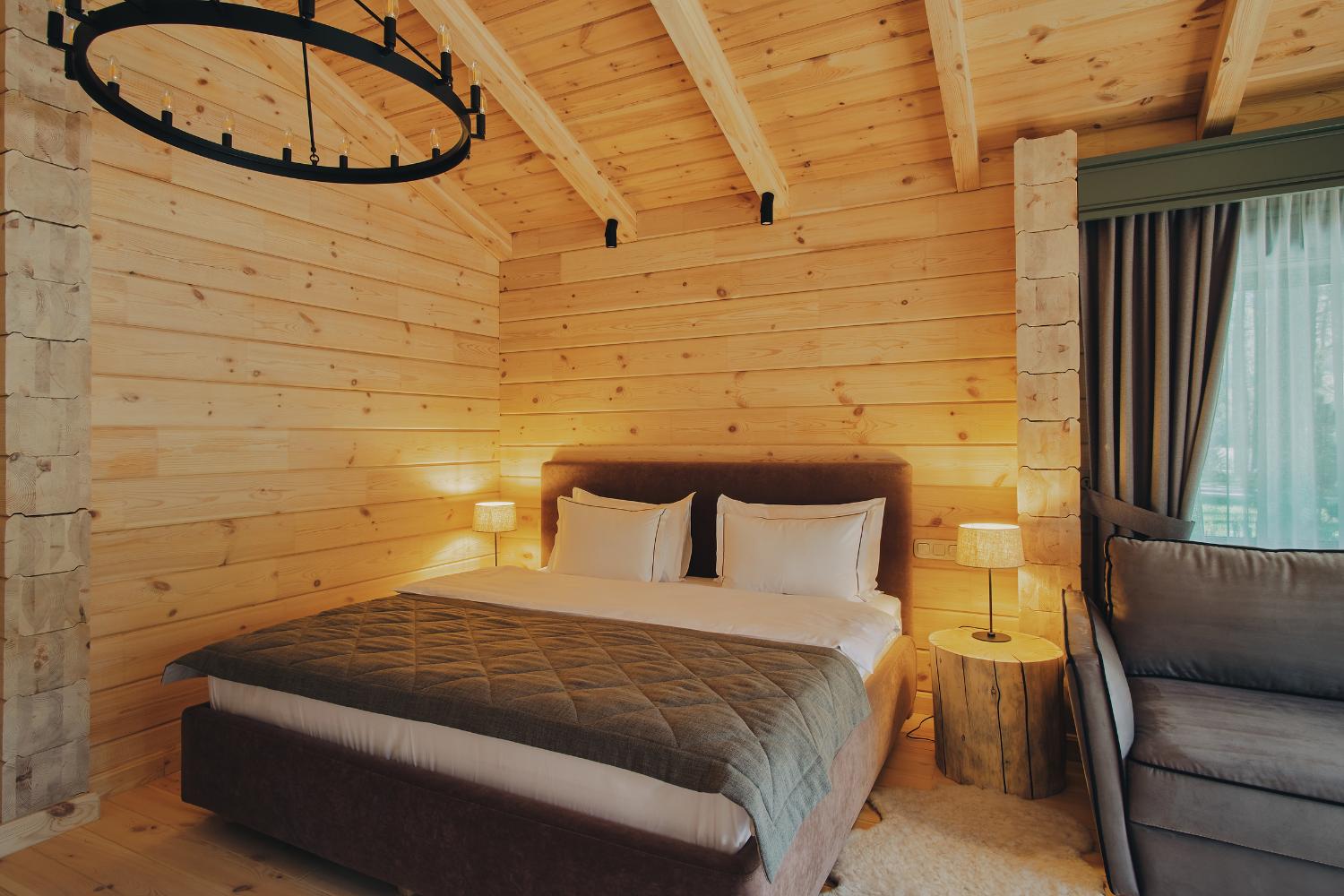 Cozy two-story Deluxe Chalet houses with panoramic windows will immerse you in an atmosphere of tranquility and pristine nature.