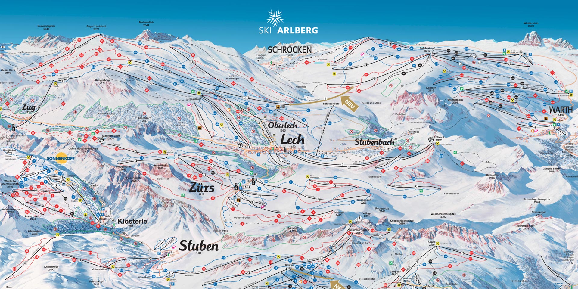 Map of the slopes of the ski resort Lech Austria