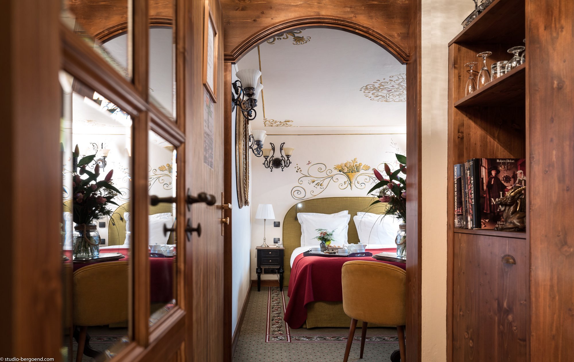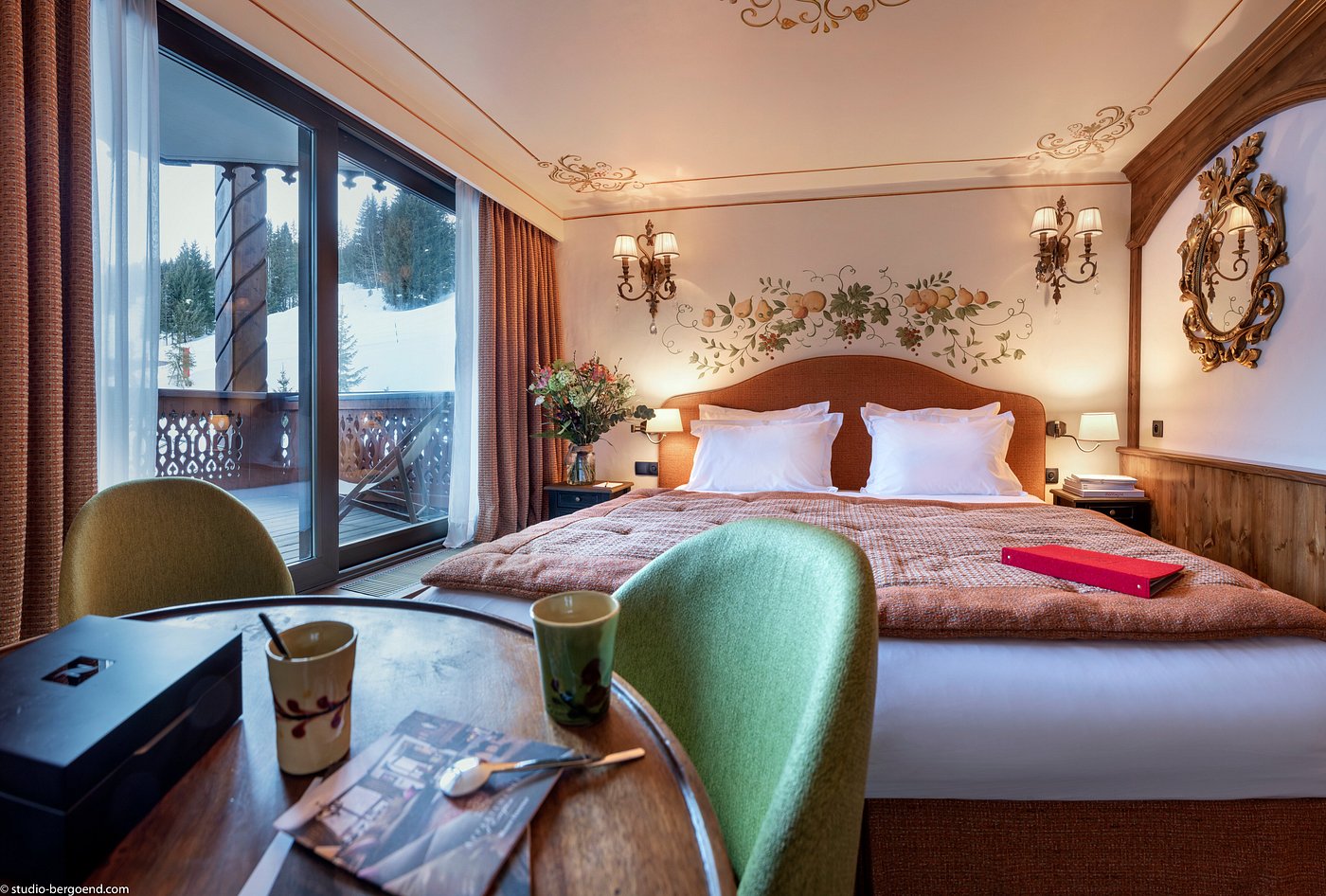 Симпатичный двухместный номер площадью 18 кв.м., оформленный на стыке стилей классицизма и альпийского шале. Укомплектован большой двуспальной или двумя односпальными кроватями, небольшой зоной отдыха с креслами и столиком. В санузле — ванна либо душ. Номера этого типа есть как с балконом, так и нет.