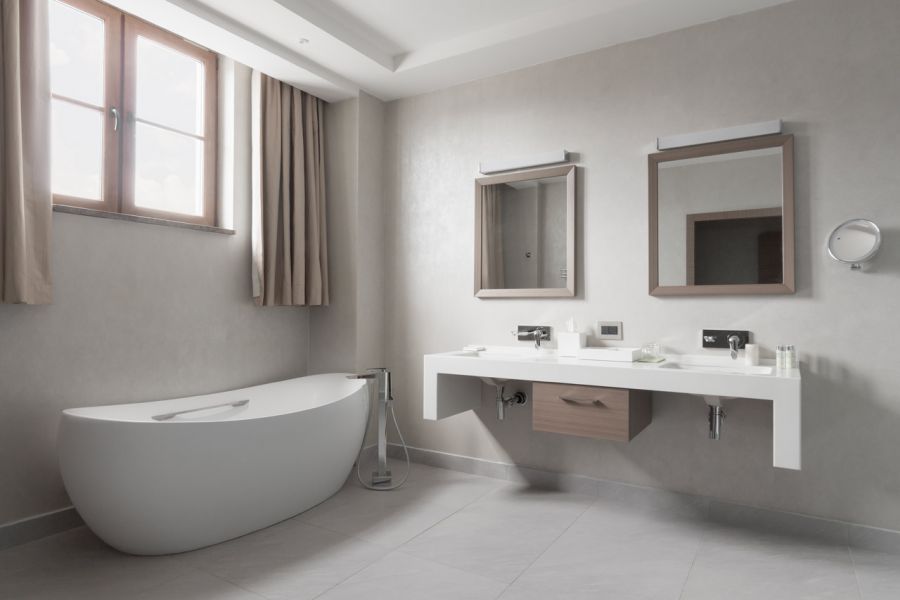 Общая площадь номера 60-70м2. Одна двуспальная кровать размера king size. Две ванные комнаты: гостевая и основная. Основная ванная комната: ванна, душевая кабина. В номере: тв, утюг, гладильная доска, фен, сейф, мини-холодильник. В номере имеется диван (раскладывается), рабочий уголок (письменный стол, стул). Дополнительная кровать по запросу.