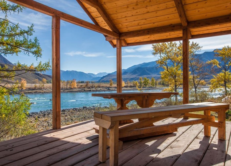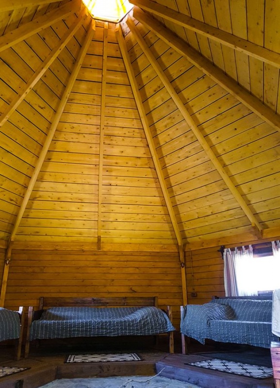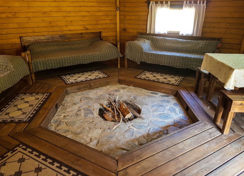 Невероятный опыт проживание в настоящем алтайском жилище! Летний вариант размещения, обогреваемый костром в центре дома. Дым уходит через отверстие в крыше, согревая аил на короткий период времени. В помещении четыре спальных места, обеденная зона со столом и лавками, посуда для приготовления пищи на костре. Есть терраса и беседка на самом берегу Катуни. Удобства на улице.