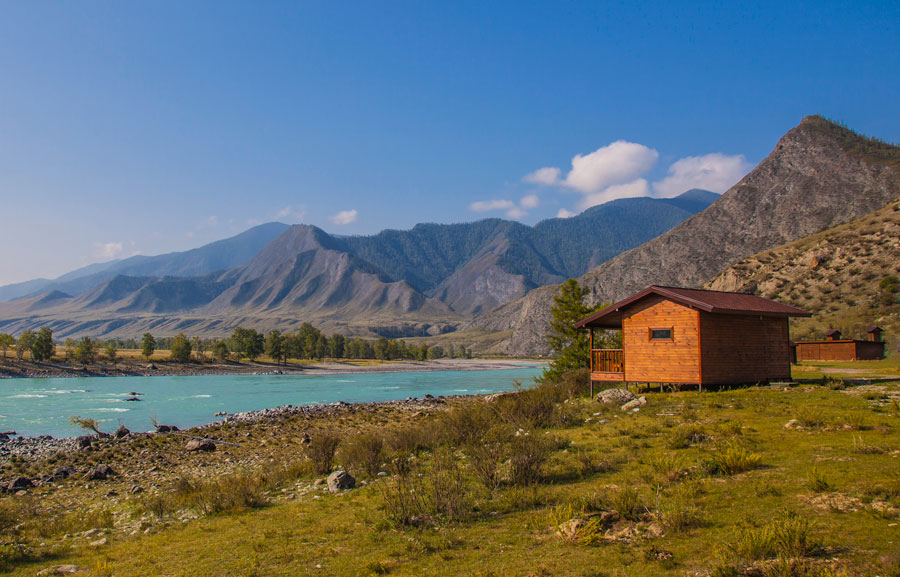 Полностью благоустроенный дом с жилой площадью около 23 кв.м. Есть двухместные и трехместные варианты. Дом построен из древесного бруса и оформлен в эко-стиле. Из панорамного окна открывается шикарный вид на Катунь, горы и долину. В номере есть всё для комфортного проживания: туалетная комната с душевой кабиной, чайник и чайный набор, гигиенический набор, фен. Теплые полы делают проживание в доме приятным в любое время года.
