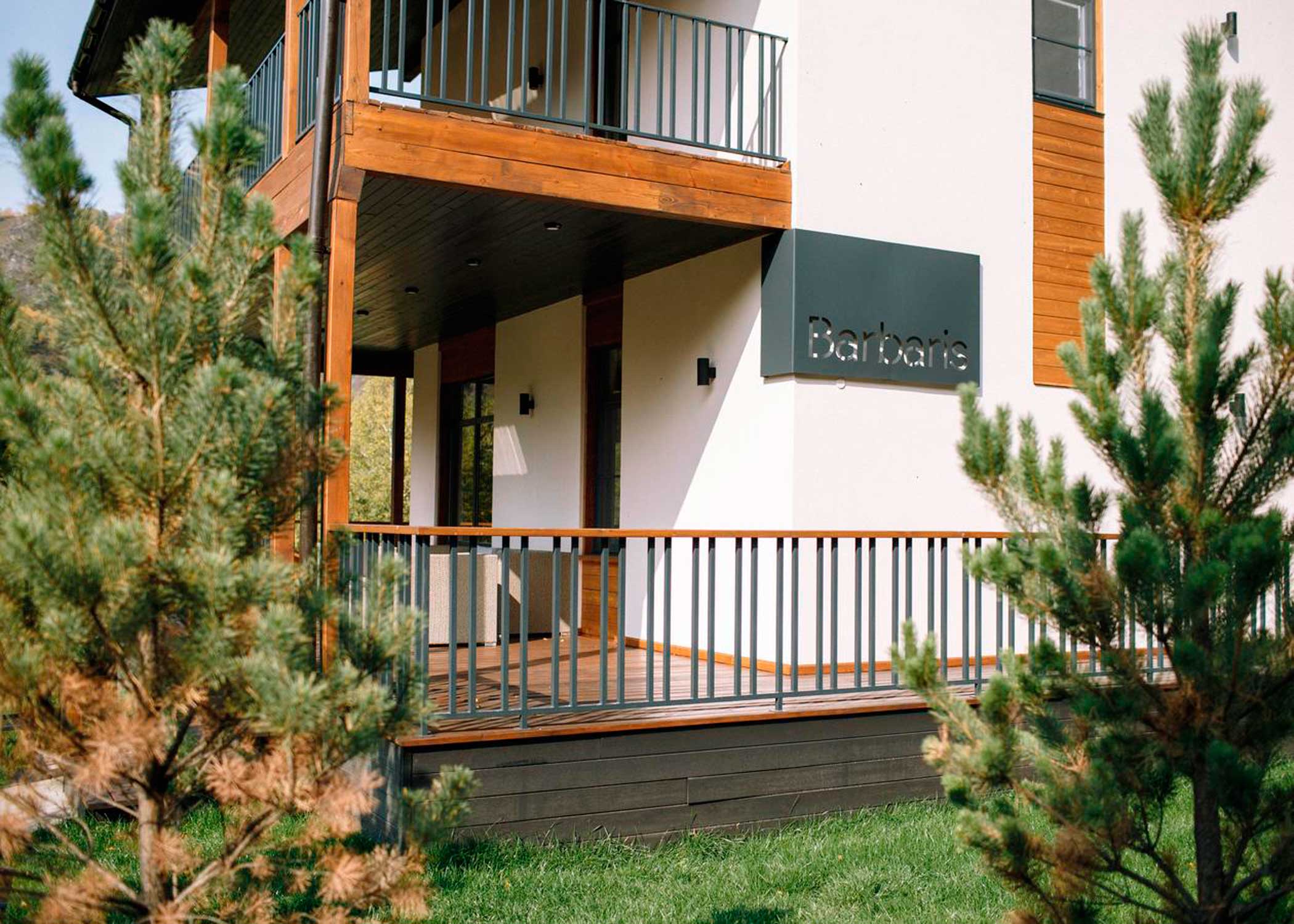 Мини-отель предназначен для групповых заездов. В просторном двухэтажном здании 8 номеров, каждый из них площадью 20 кв.м., а также общая гостиная с камином. В номерах кровати double или twin, собственные ванные комнаты, все душевые принадлежности и средства гигиены, сейфы, мини-бары. Бесплатный Wi-Fi, так же как и на территории всего отеля. В номерах есть террасы или балконы с видом на реку и горы.