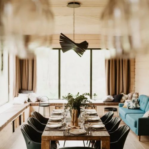 Площадь двухэтажного коттеджа — 100 кв.м. Эксклюзивное расположение: дом находится в уединенном месте, на берегу озера Микижа. В нем четыре спальных комнаты с двухместными кроватями и собственными ванными. Общая зона — одновременно и гостиная, и полностью укомплектованная кухня с обеденной зоной и небольшой барной стойкой. Для приготовления пищи можно пригласить местного шеф-повара. На террасе — собственная купель с термальной водой, в которой можно расслабиться в любое время года. Также есть собственная мангальная зона.