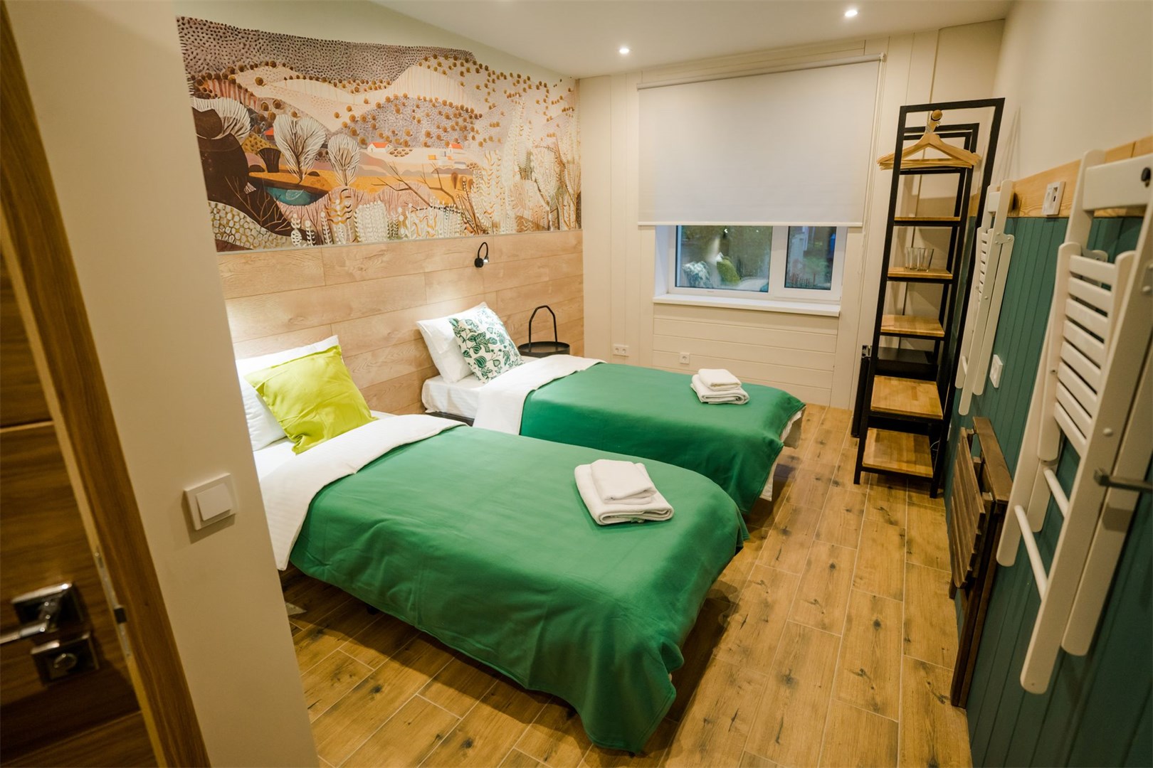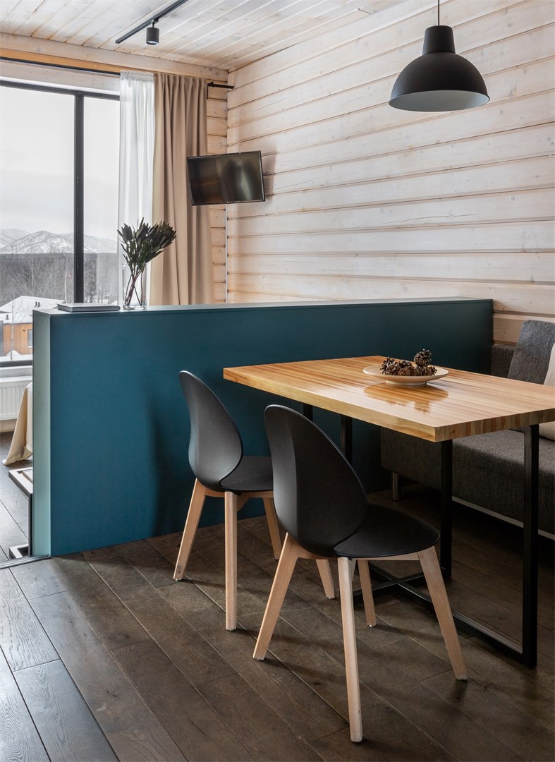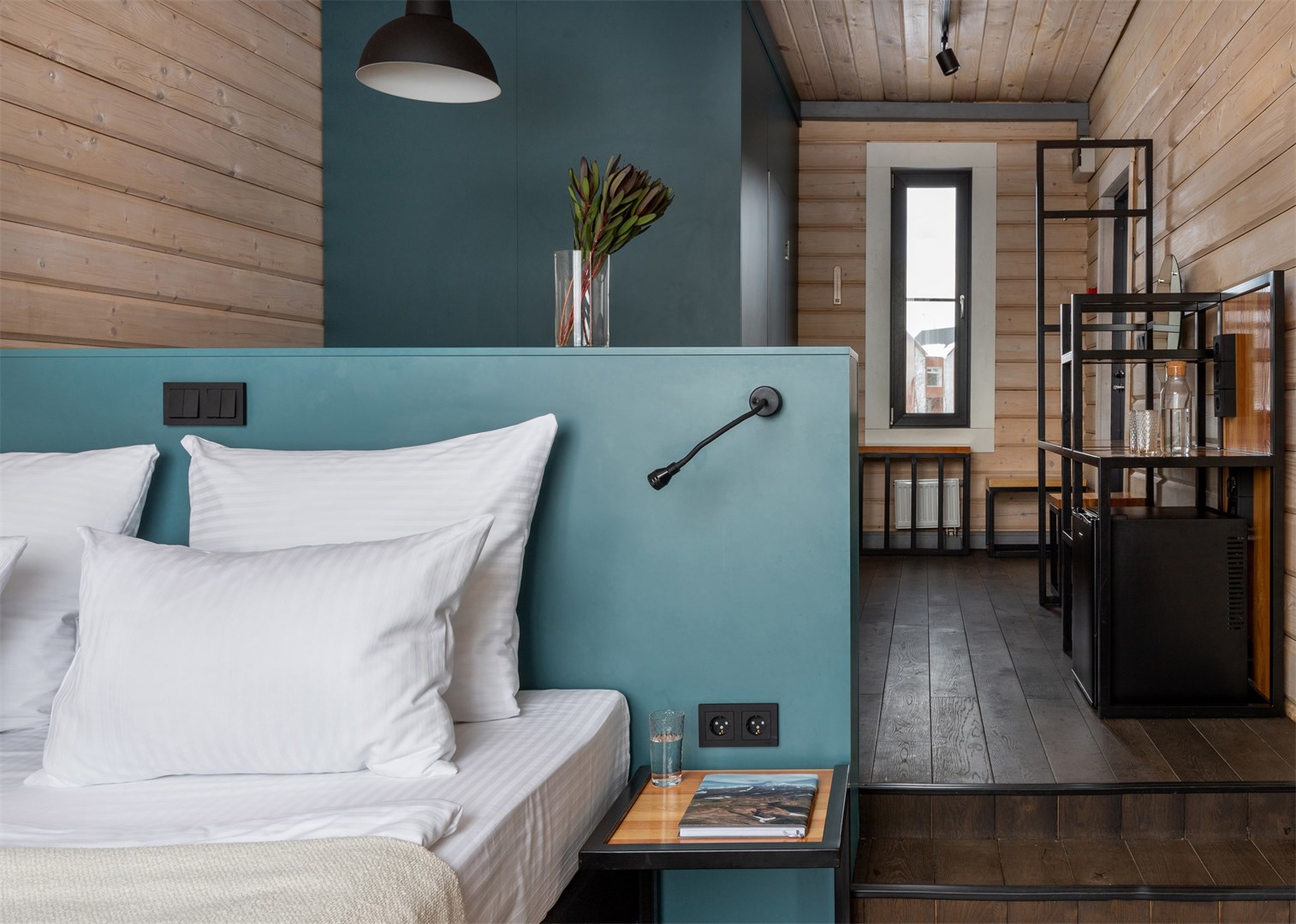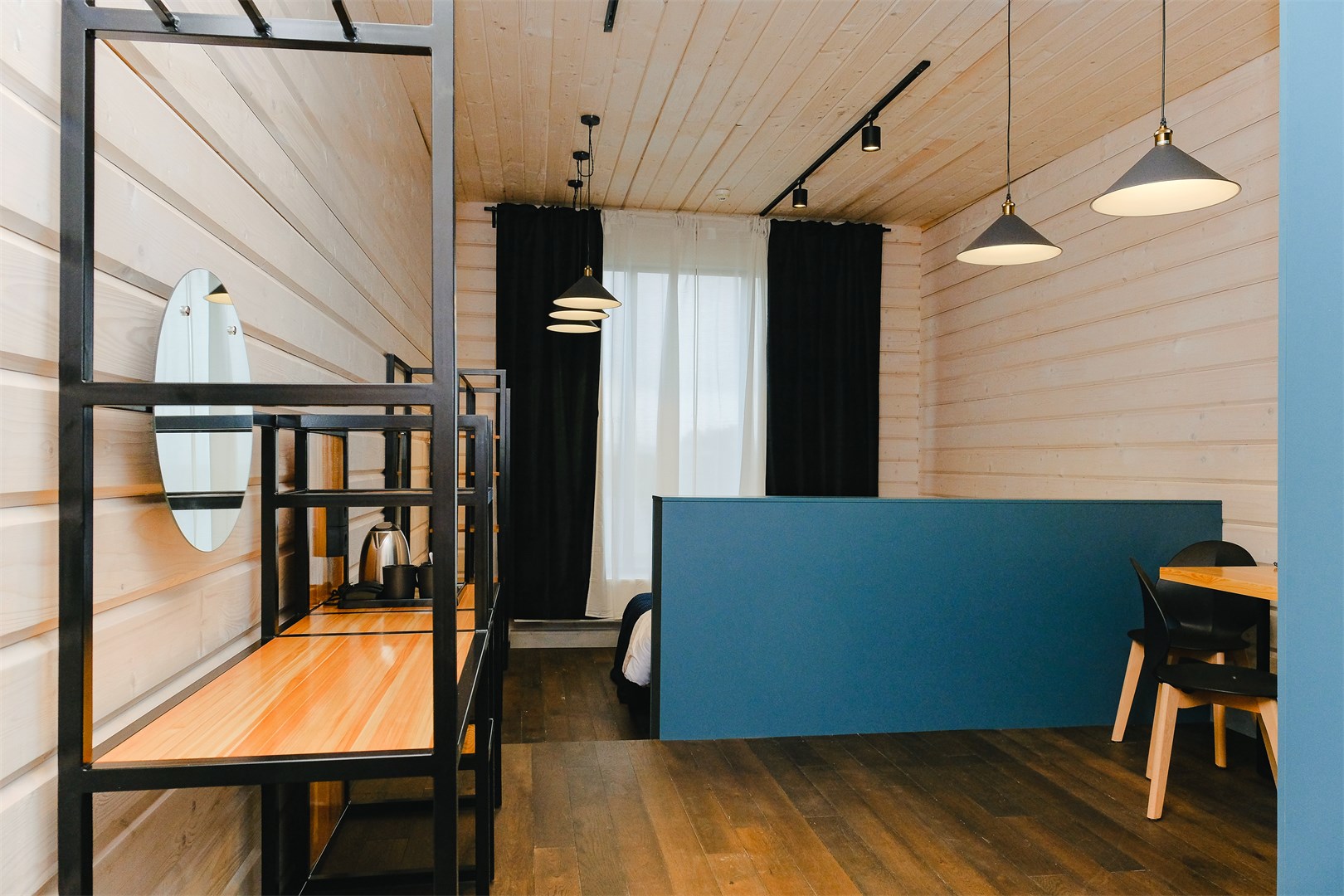 Номер площадью 21 кв.м., предназначенный для проживания до 3 гостей. Благодаря грамотной планировке помещения здесь очень комфортно и есть всё необходимое: не только спальные места, но и обеденная и гардеробная зоны, собственная ванная комната с душевой кабиной. Из всех номеров этого типа открывается вид на горы. Окна в помещении могут быть стандартными прямоугольными или круглыми — такие окна-иллюминаторы стали визитной карточкой «Лагуны».