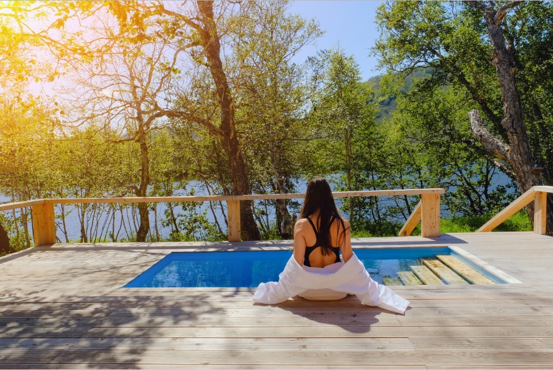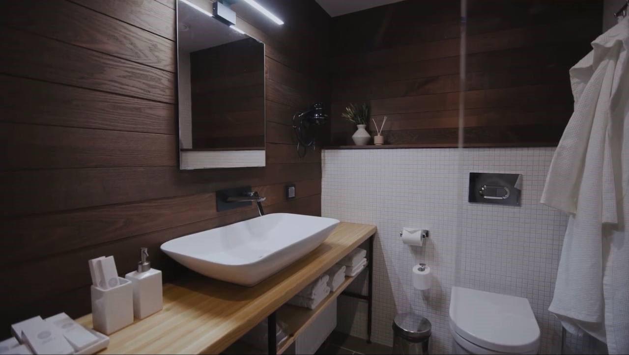 Просторный коттедж площадью 150 кв.м. 2 этажа, две спальни с собственными санузлами. Огромная светлая гостиная, наполненная естественным светом из панорамных окон, мини-кухня и обеденная зона. Особенность этого варианта размещения — собственная купель с теплой водой (из термальных источников) на большой террасе. Всё, что нужно для расслабленного отдыха в атмосфере роскоши.