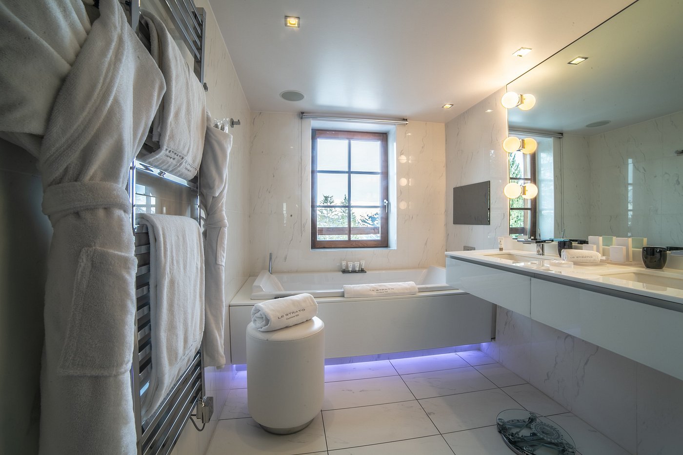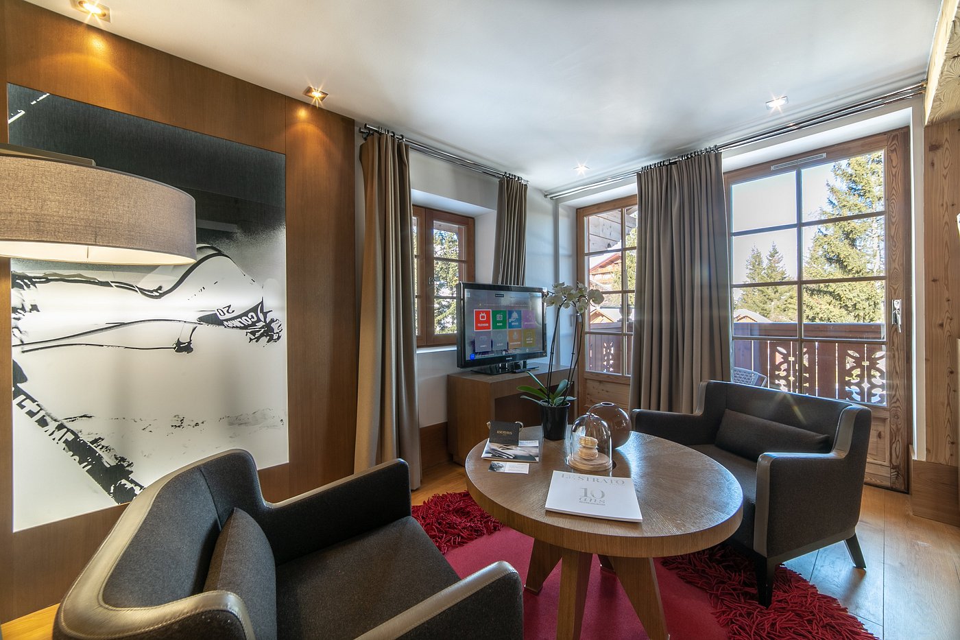 Пятизвездочный отель с великолепным обслуживанием — заслуженные пять звезд за ваш прекрасный отдых. В непосредственной близости от Le Strato находится бугельный подъемник, который за считанные минуты доставит вас в зону катания. На территории отеля есть ски-рум и роскошный SPA-салон, занимающий площадь в 900 кв.м., с сауной, бассейном с видом на долину и горы, а также фитнес-центром. Номера и общие зоны оформлены в стиле современной классики с альпийской атмосферой: много света, натуральные материалы, сдержанная и сбалансированная цветовая палитра. Ресторан отеля удостоен звезды Мишлен, здесь вы можете заказать блюда как местной, так и всеми любимой средиземноморской кухни.