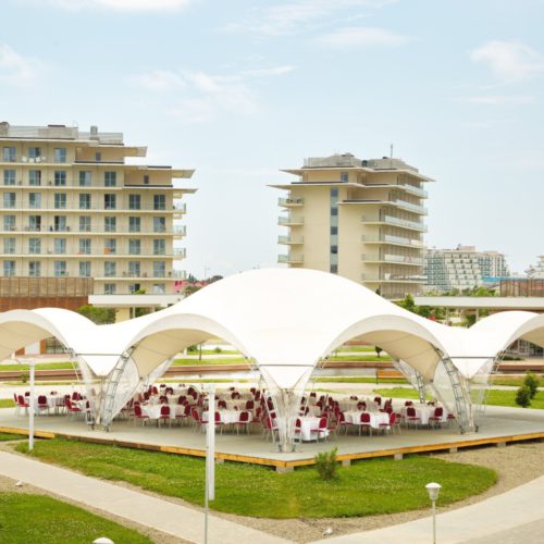 Всего есть 12 корпусов и 2880 комфортабельных номеров. Все они имеют стильное исполнение, оснащены всем необходимым для непринужденного времяпровождения. Большая территория позволит посетить живописные места. Например, можно отравиться в Сочи Парк и зарядиться позитивными эмоциями. Устройте романтический вечер около тенистых аллей. Сыграйте дружескую партию в теннис. Вкусно перекусить получится в кафе и ресторанах.