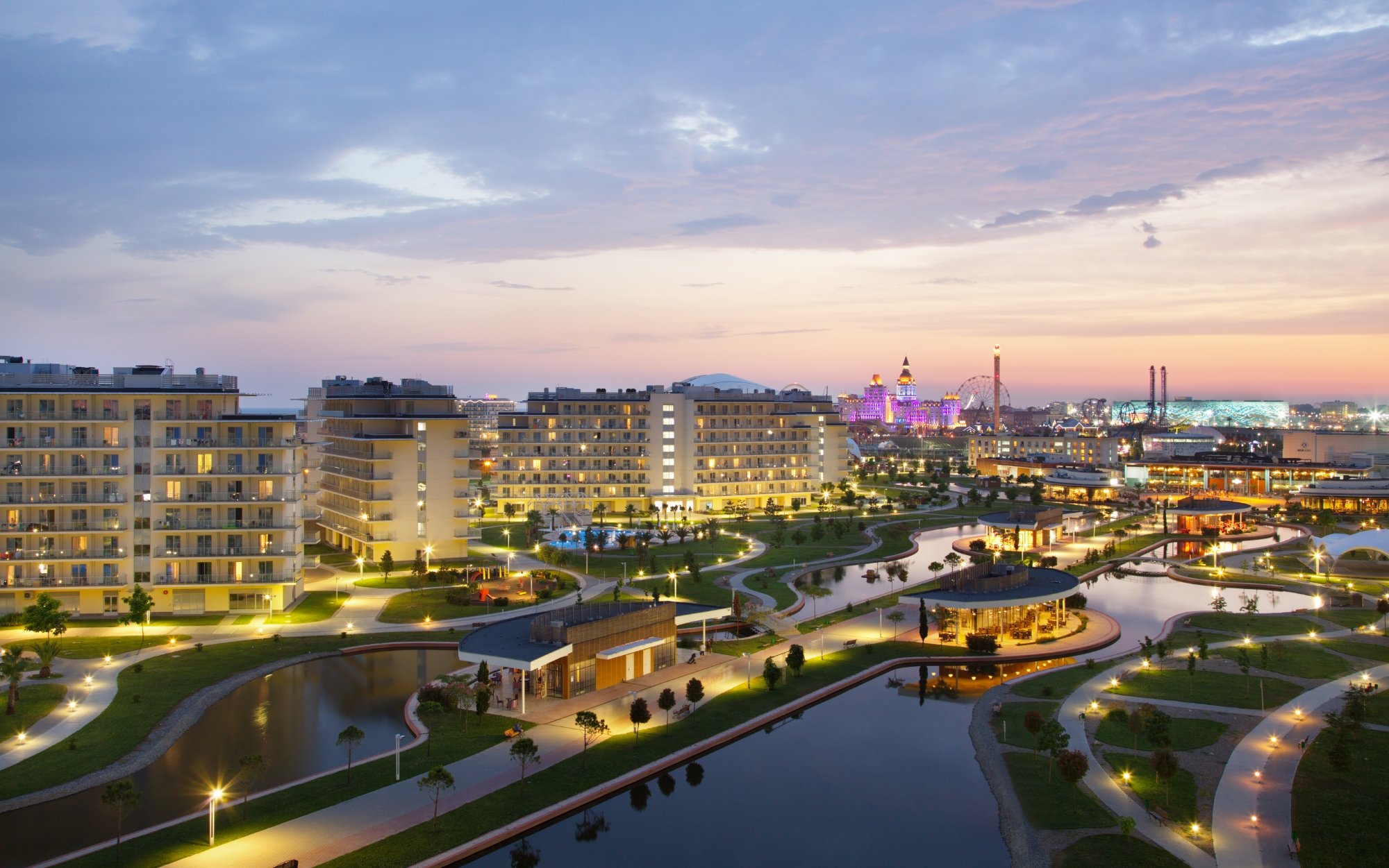 Всего есть 12 корпусов и 2880 комфортабельных номеров. Все они имеют стильное исполнение, оснащены всем необходимым для непринужденного времяпровождения. Большая территория позволит посетить живописные места. Например, можно отравиться в Сочи Парк и зарядиться позитивными эмоциями. Устройте романтический вечер около тенистых аллей. Сыграйте дружескую партию в теннис. Вкусно перекусить получится в кафе и ресторанах.