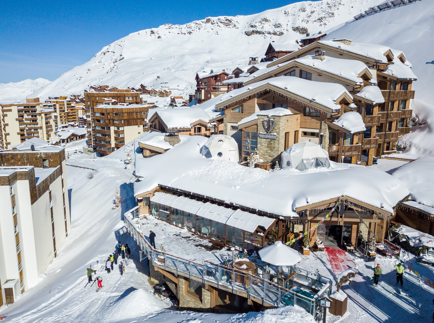 Отель класса люкс — для тех, кто хочет провести свои альпийские каникулы в атмосфере роскоши. Интерьеры номеров и общих зон сочетают в себе современный оригинальный стиль, аутентичность альпийского шале и продуманную эргономику. Из окон открываются великолепные панорамы гор. На территории есть два ресторана под руководством опытных шеф-поваров, один из которых является обладателем звезды Мишлен. В оздоровительном центре площадью 500 кв.м. есть все популярные спа-услуги: массаж, бассейн, джакузи (в том числе и под открытым небом), хаммам, сауны. Процедуры проводятся с использованием натуральной косметики известного бренда L’OCCITANE. При отеле работает магазин лыжного снаряжения, где можно приобрести или взять напрокат всю экипировку.