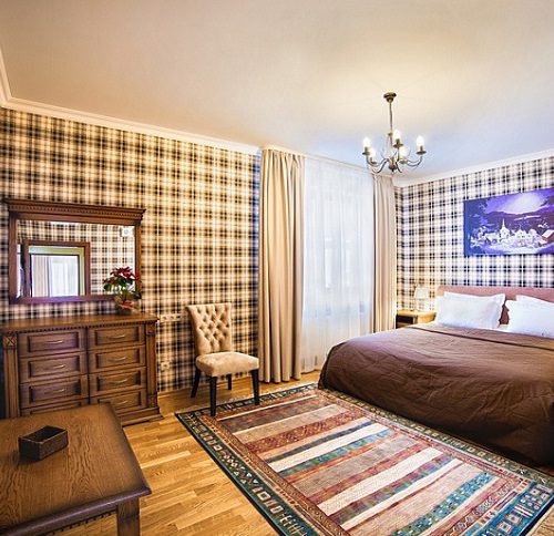 Уютный небольшой номер для 2 человек. Есть большая двуспальная кровать, ванная с косметическими принадлежностями. Предоставляются махровые полотенца, халаты, тапочки. Насладиться любимыми сериалами и фильмами поможет большой телевизор. Прочная мебель сделана из дуба.