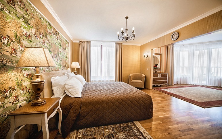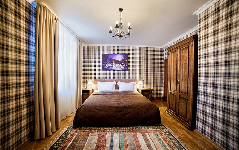 Уютный небольшой номер для 2 человек. Есть большая двуспальная кровать, ванная с косметическими принадлежностями. Предоставляются махровые полотенца, халаты, тапочки. Насладиться любимыми сериалами и фильмами поможет большой телевизор. Прочная мебель сделана из дуба.