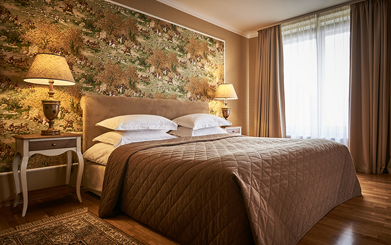 Просторный и уютный номер для 2 человек. Здесь есть большая кровать, ванная, косметические принадлежности, махровые полотенца. Предоставляются тапочки и халат. На большом телевизоре удобно будет смотреть сериалы, фильмы, важные матчи. Качественная дубовая мебель придает изюминки интерьеру. Есть балкон с прекрасным видом на горы.