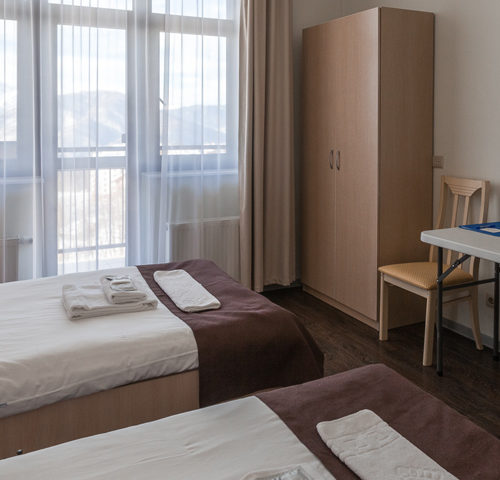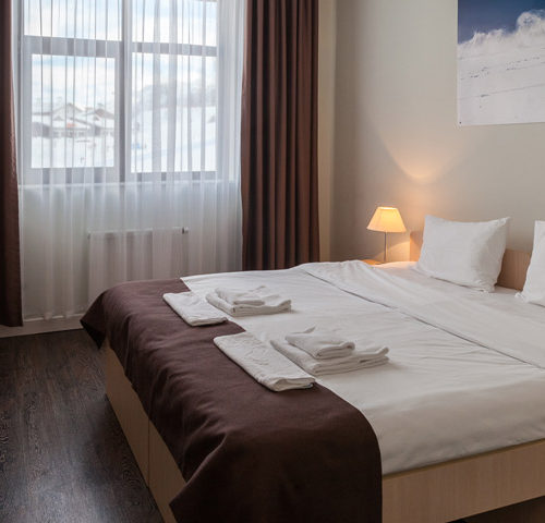 Блок на 2 комнаты имеет общий санузел и душ. Блок на 4 комнаты имеет 2 общих санузла и душа. Площадь 1 комнаты составляет 10-15 кв.м. Хранить лыжи и инвентарь можно в специально предназначенном месте. Есть большой телевизор, телефон, тумбочки, чайник и чайные наборы. Предоставляются полотенца. Есть шкаф. На 1 этаже имеется общая кухня. В номере могут проживать 1 или 2 человека.