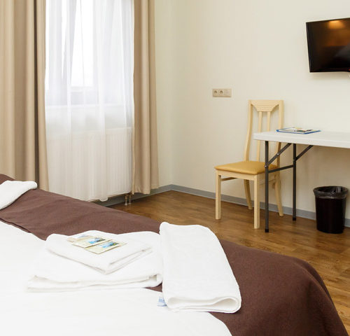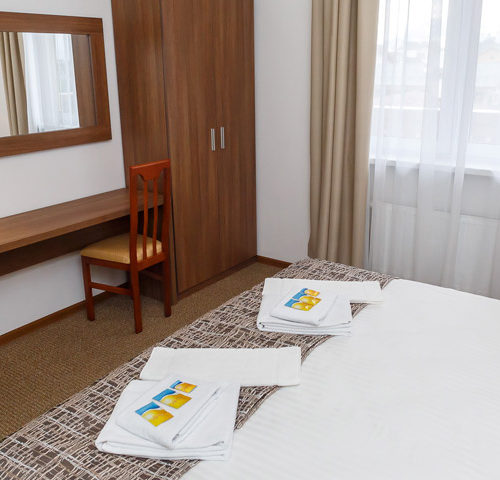Комплекс включает 4 корпуса. Можно выбрать вариант размещения, исходя из собственных предпочтений. Есть комнаты эконом-класса при трех или четырехместном размещении. Они небольшие и уютные с общим санузлом и коридором. Стандартный номер имеет одну или две раздельные кровати. Здесь можно комфортно расположиться. Имеется собственный санузел. Тем, кто приехал на отдых с детьми, стоит выбрать специальные семейные номера. В них присутствует большая спальня и гостиная. Если ваша компания большая и дружная, то можно расположиться в номерах с несколькими спальнями и общей гостиной. Апартаменты с кухней придутся по душе всем, кто хочет чувствовать себя, словно дома. Здесь есть полностью оборудованная кухня.