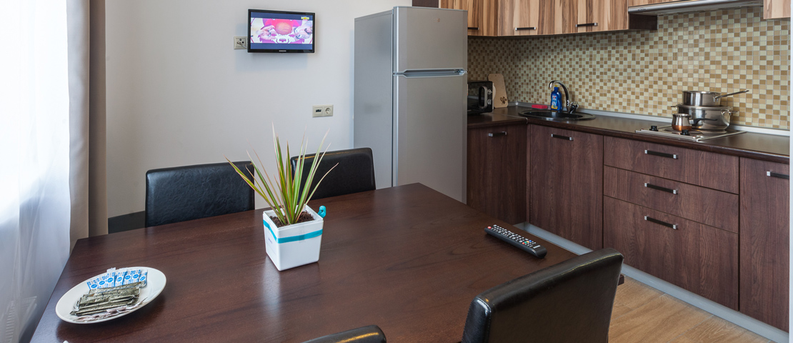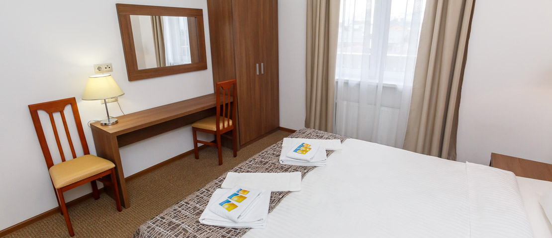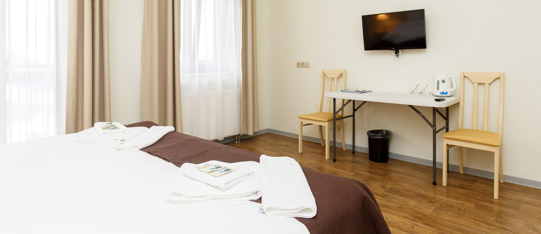 Комплекс включает 4 корпуса. Можно выбрать вариант размещения, исходя из собственных предпочтений. Есть комнаты эконом-класса при трех или четырехместном размещении. Они небольшие и уютные с общим санузлом и коридором. Стандартный номер имеет одну или две раздельные кровати. Здесь можно комфортно расположиться. Имеется собственный санузел. Тем, кто приехал на отдых с детьми, стоит выбрать специальные семейные номера. В них присутствует большая спальня и гостиная. Если ваша компания большая и дружная, то можно расположиться в номерах с несколькими спальнями и общей гостиной. Апартаменты с кухней придутся по душе всем, кто хочет чувствовать себя, словно дома. Здесь есть полностью оборудованная кухня.
