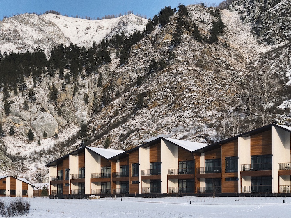 Отель занимает территорию 10 га. Вы отдохнете в стильных таунхаусах в окружении величественных гор, на берегу Катуни (пологий выход к реке). Здесь вас ждет прекрасное обслуживание, расслабленная атмосфера, банный комплекс и СПА.