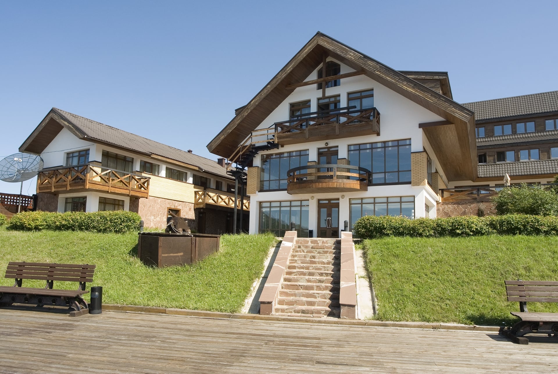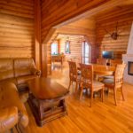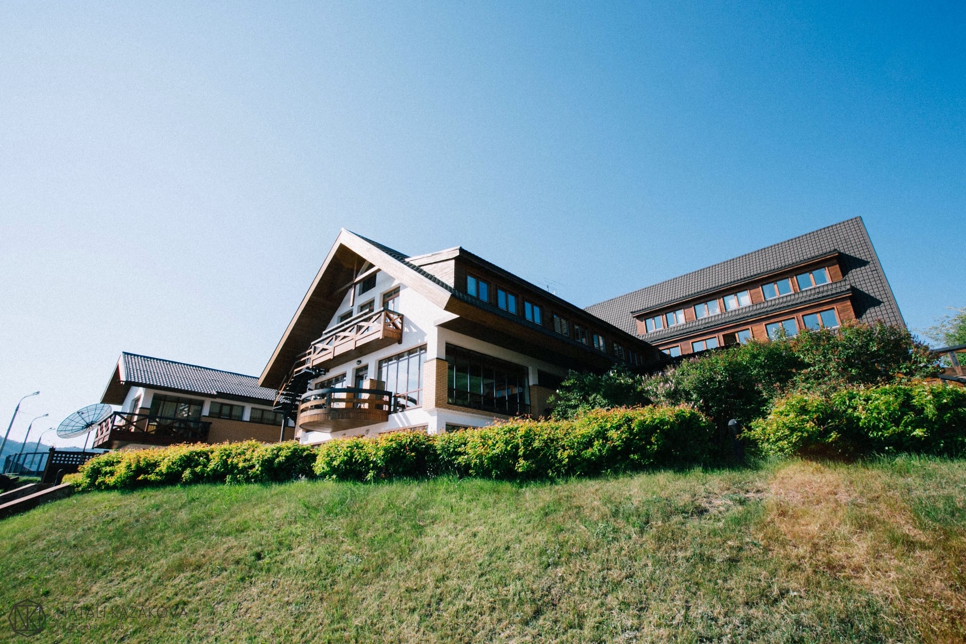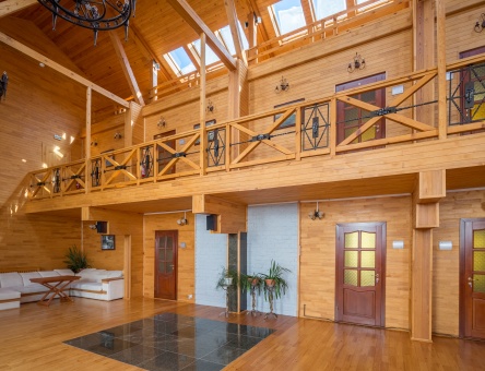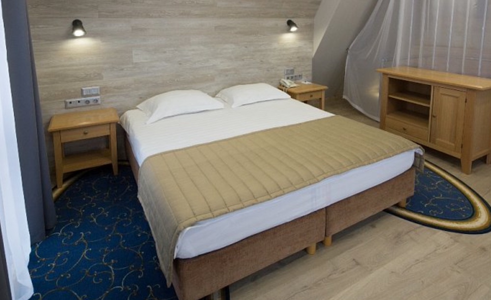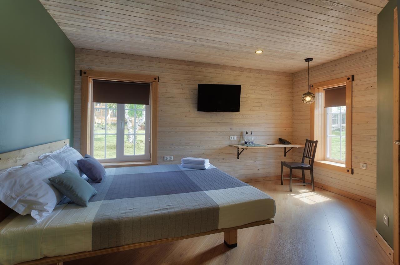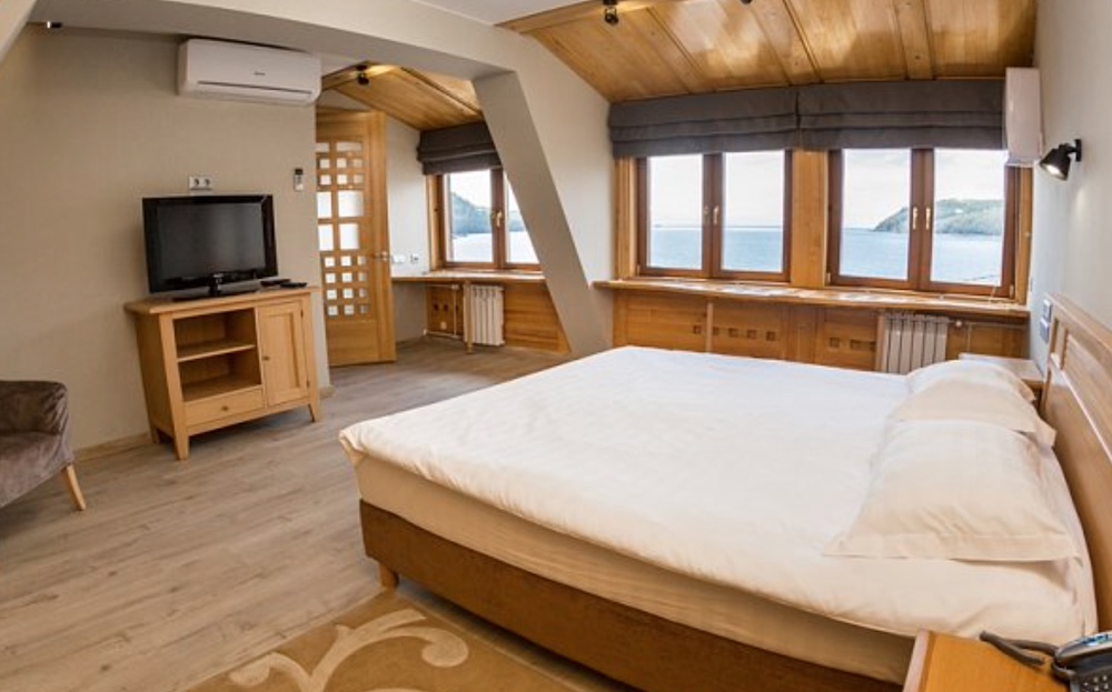 Гостиничный комплекс построен преимущественно из ценных пород деревьев — сибирской сосны, ясеня, дуба. Номера с роскошной обстановкой, соответствующей высочайшим мировым стандартам. Стандарты обслуживания и кухня удовлетворят даже самых взыскательных гостей.