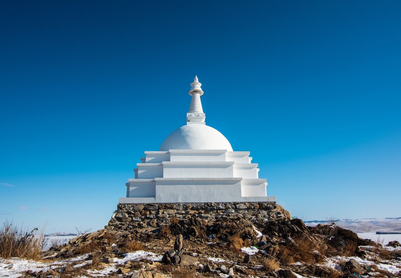 Мы пройдем узкий пролив между Ольхоном и материком, который называется Малые Ольхонские Ворота. Сделаем высадку на острове Огой и посетим буддистскую ступу просветления. Белоснежное сооружение, увенчанное куполом и шпилем, было возведено в 2005 году и стало одним из важнейших символов буддизма на Байкале. Кроме того, Огой — место гнездования сотни серебристых чаек, которые идеально вписываются в этот сакральный пейзаж.