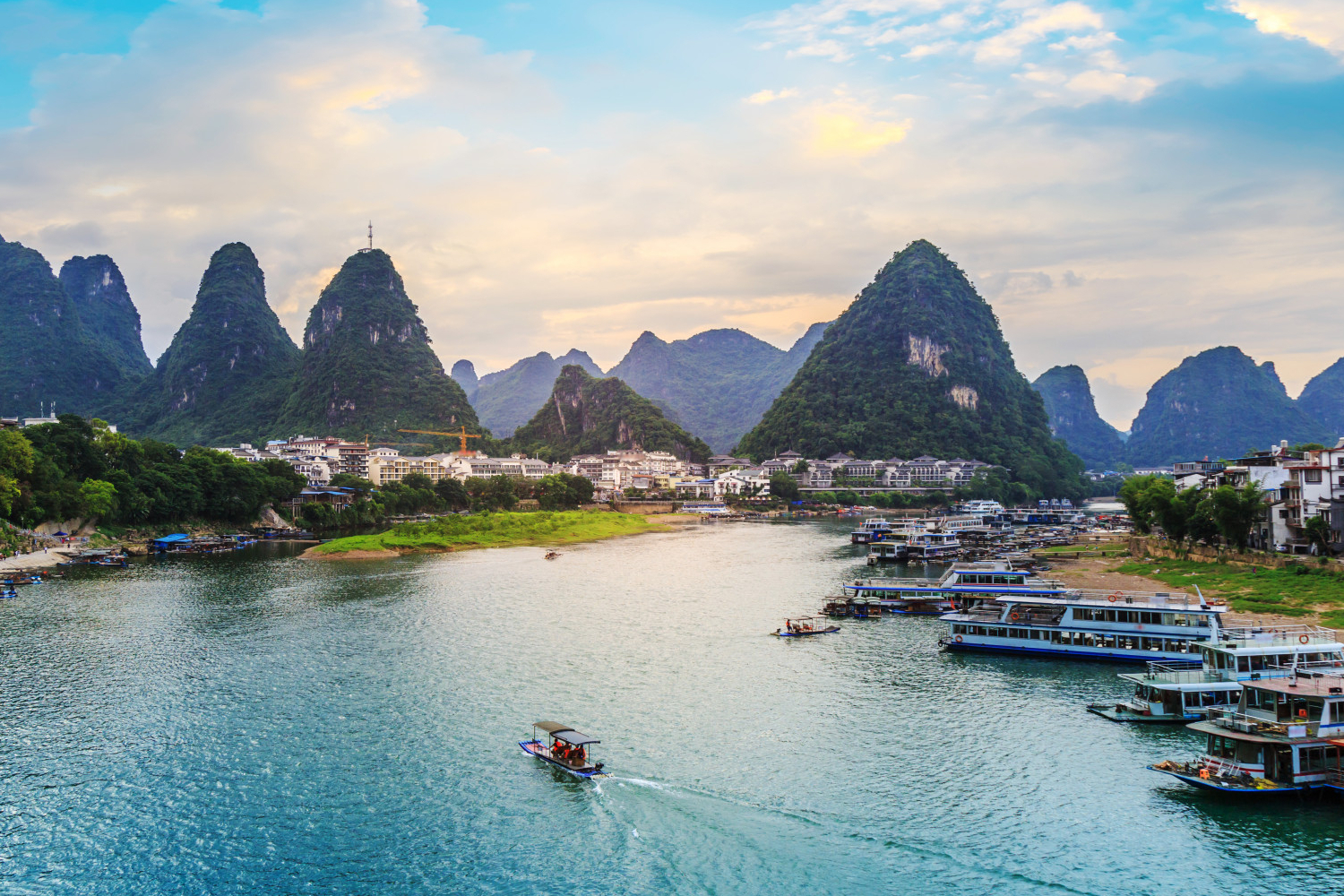 Река Лицзян – одна из важнейших водных артерий Китая. Знакомство с этой рекой можно совместить с посещением двух красивых и интересных городов – Гуйлинь и Яншо. Проплывая мимо живописных деревень, вы сможете наблюдать за рыбаками на бамбуковых лодках и окунуться в атмосферу традиционного Китая. Вы также увидите горные пейзажи, причем у многих гор очень интересные названия: Слоновый хобот, Пагода, Старик… По прибытии в Яншо приглашаем прогуляться по Западной улице, а по желанию — посетить зрелищное Шоу на воде «Impression Sanjie Liu».