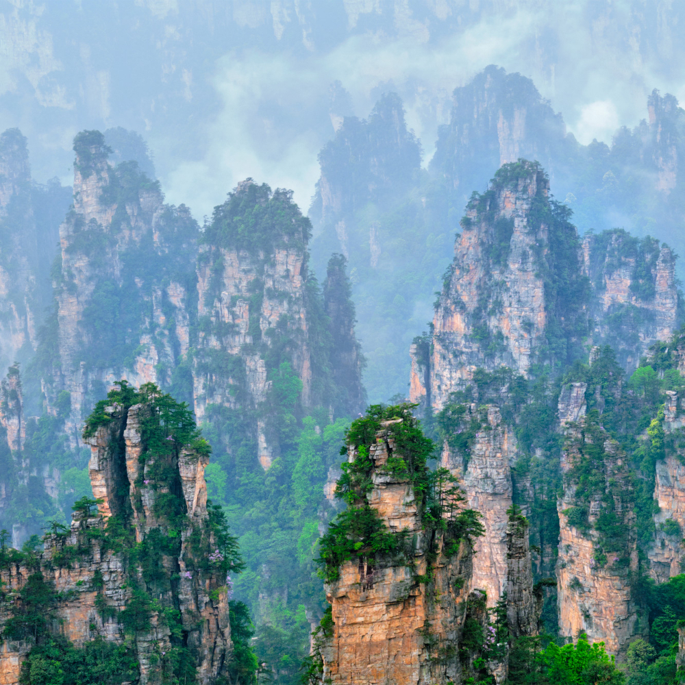 Чжанцзяцзе – лучшая локация для близкого знакомства с природой Китая, а местные пейзажи с удивительными скалами – одна из «визитных карточек» страны. В округе расположены два природных парка, где вас ждут потрясающие виды и захватывающие приключения. Для того, чтобы увидеть всё самое интересное, стоит задержаться в Чжанцзяцзе минимум на пару дней. Сначала мы отправимся на фуникулере к горам «Желтые камни», где вы насладитесь панорамными видами и полюбуйтесь реликтовыми лесами. Далее — прогулка по каньону «Золотой кнут», вдоль ручья, окруженного буйной растительностью. Вам также предстоит путешествие по уникальной пещере Желтого дракона с кристаллическими сталактитами и сталагмитами. Еще одна точка притяжения – озеро Баофэн, где прозрачные воды и величественные горы словно сошли со страниц старинной сказки.