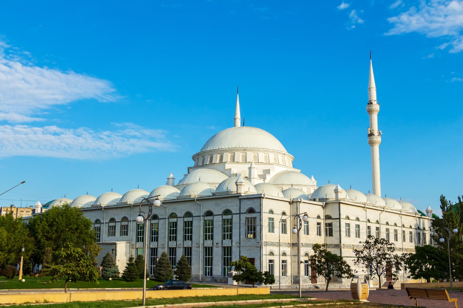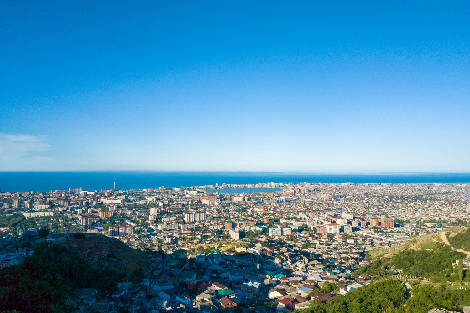 В первый день по вашему желанию можно организовать непродолжительную пешую экскурсию по городу. Во время прогулки вы познакомитесь с историей и культурой Махачкалы, увидите Дом Правительства на центральной площади, пройдетесь по проспекту Расула Гамзатова («махачкалинский Арбат»), насладитесь видами со смотровой площадки на горе Тарки-Тау, восхититесь монументальной Джума-мечетью и озером Ак-Гель в самом сердце города.