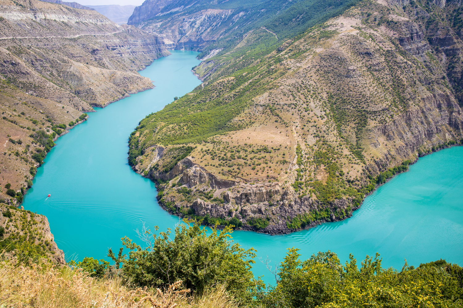 Насладиться видом каньона можно со смотровой площадки. Чиркейское водохранилище, расположенное по пути к этой достопримечательности, отлично подходит для прогулки на катере.