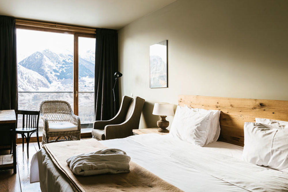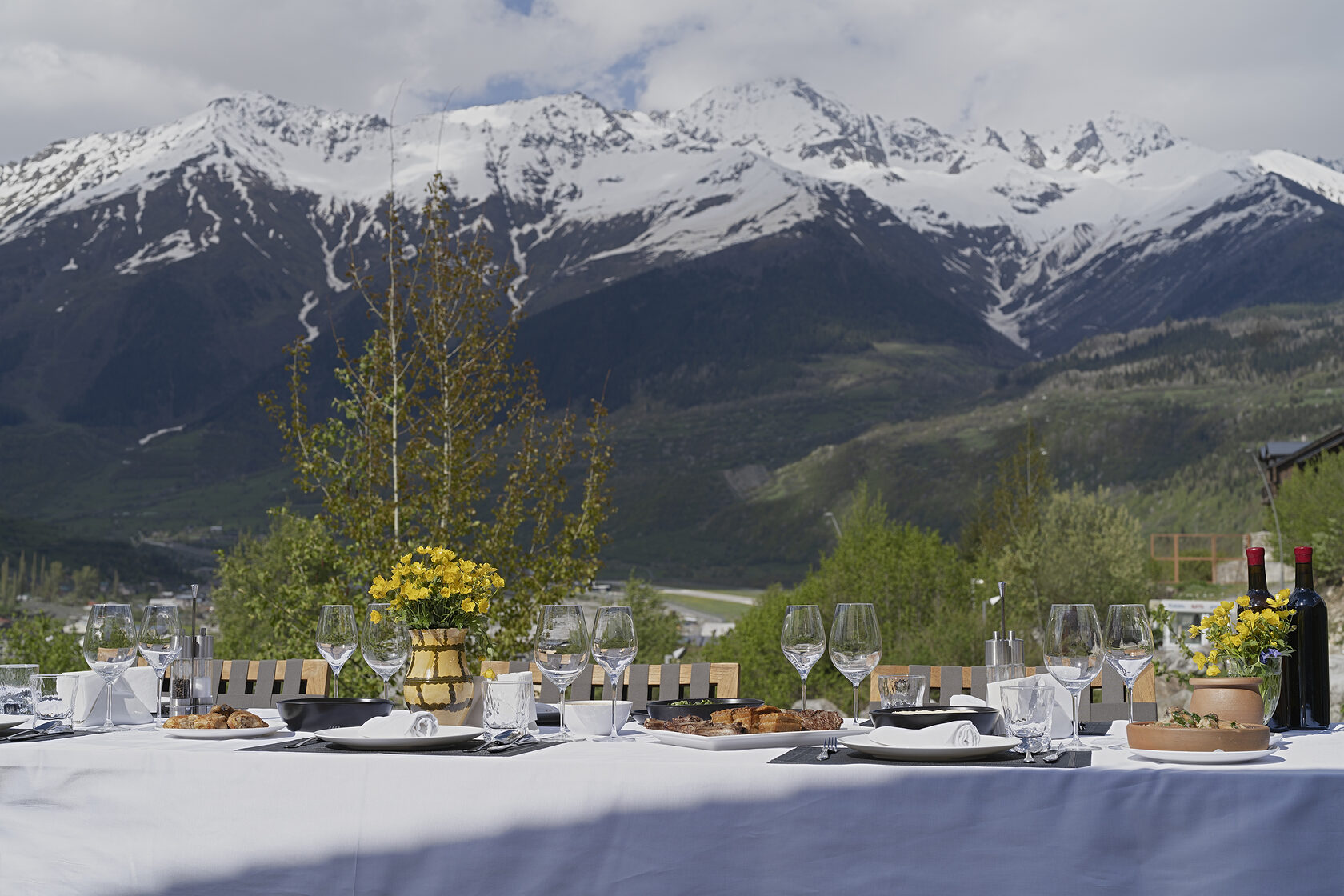 Уникальное шале в Местиа великолепно вписано в окружающий ландшафт. При строительстве использованы натуральные экологичные материалы — дерево и камень. Дизайнерские номера оформлены в лаконичном, естественном стиле, из панорамных окон видны горы, а в ресторане подают местные блюда и вина.