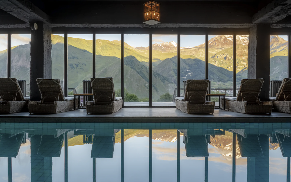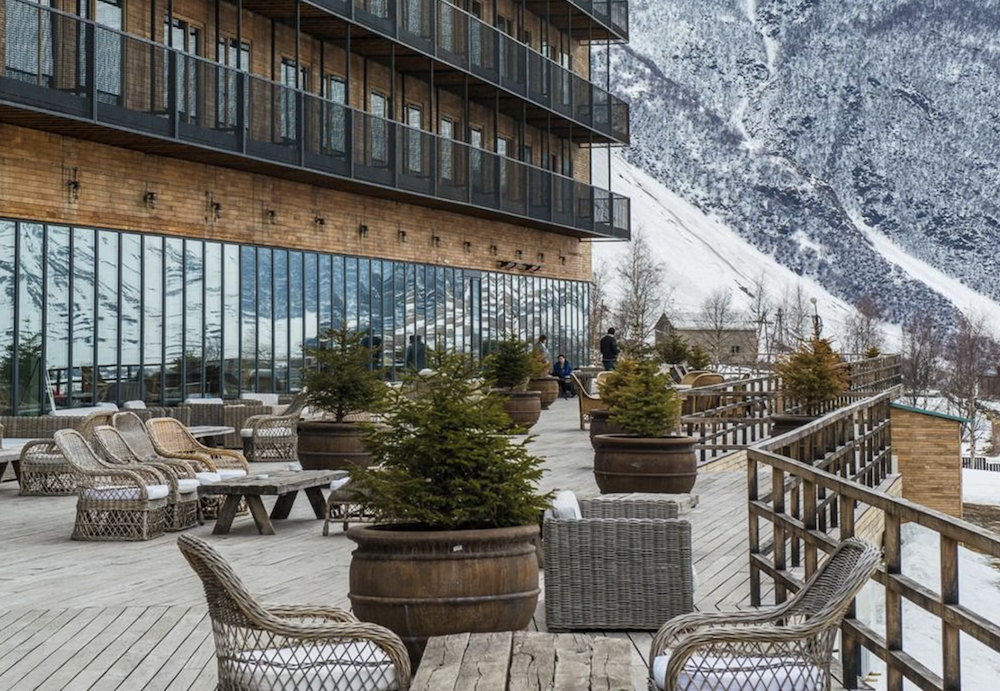 Стильный отель у подножья Казбека. Его главная особенность — огромная общая терраса с завораживающим видом на горы. Вас ждет атмосфера единения с природой, дизайнерские интерьеры номеров панорамными окнами, предупредительный персонал, панорамный бассейн, СПА и вкуснейшие авторские коктейли в лобби-баре.