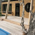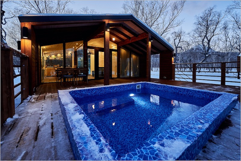 Из дома Вы попадаете на персональную террасу с купелью, наполненной целебными водами. Также на территории есть площадка для барбекю и деревянный пирс с лодкой, на которой Вы можете совершить неспешную прогулку и насладиться видами.
