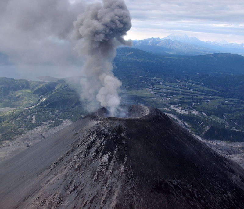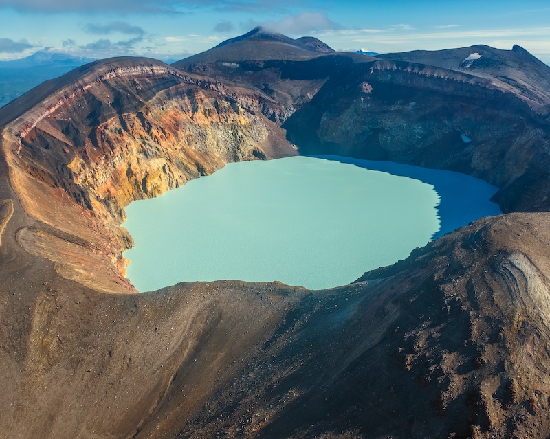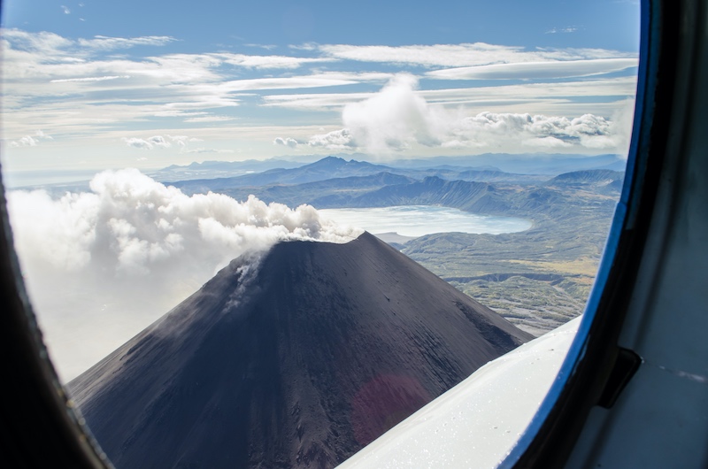 Из иллюминатора вертолета мы сможем понаблюдать за извержением Карымского вулкана и заглянуть в фантастическое озеро в сердце вулкана Малый Семячик.