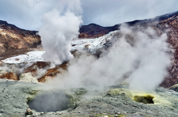 Вулкан высотой 2323 м находится в 70 километрах от Петропавловска-Камчатского. Это активный вулкан, где иногда можно наблюдать лавовые потоки. Но и в период, когда Мутновский спит, здесь есть на что посмотреть: обширные фумарольные поля (трещины или отверстия, из которых поднимаются столбы горячего газа) придают пейзажу невероятный колорит. До вулкана мы доберемся на джипах, насладившись живописными окрестностями.