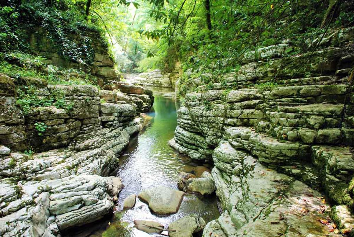 - «Чертова нора» – небольшая, но очень интересная пещера, вход в которую доступен только летом, когда пересыхает река Агура. Подробнее