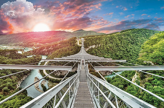Тут находится самый длинный на планете подвесной пешеходный мост Скайбридж , а так же троллей, зиплайн, гигантские качели, площадки для прыжков, скалодром, веревочный парк и другое.