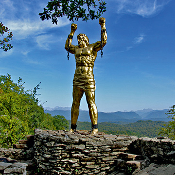 По легенде боги наказали великана за то, что тот дал людям огонь и приковали его к скале, оставив умирать. Но девушка Агура сжалилась над Прометеем и приносила ему воду. Боги разгневались за это на девушку и превратили ее в реку. Вот так и образовались три Агурских водопада, к которым мы спустимся с горы.