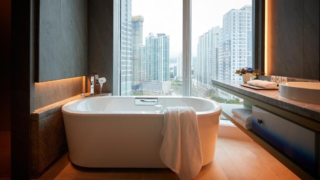Расположенный в самом сердце Пусана, в небоскрёбе LCT Tower, Signiel Busan предлагает изысканный комфорт с панорамными видами на пляж Хэундэ и моста Кванан. Отель гордится двумя ресторанами, включая китайский Chao Lan, где подают как традиционные блюда, так и их современные интерпретации. Гостям доступны спа-процедуры, infinity-бассейн с видом на море и детский сад на свежем воздухе. Это идеальное место для семейного отдыха и для тех, кто ценит утончённый стиль и безупречный сервис.