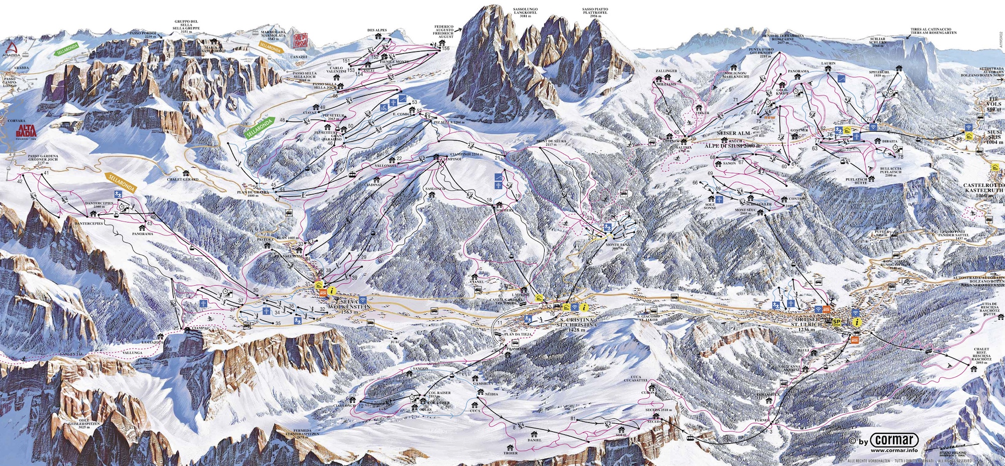 滑雪滑雪胜地瓦尔花园的地图 - Ortisei,Santa Christina,Selva Garden