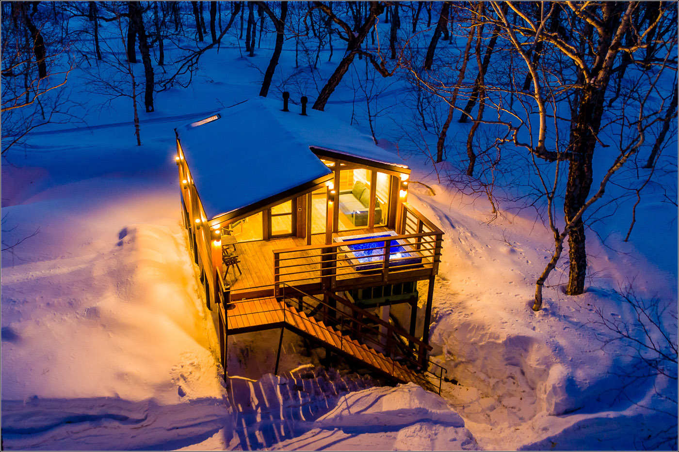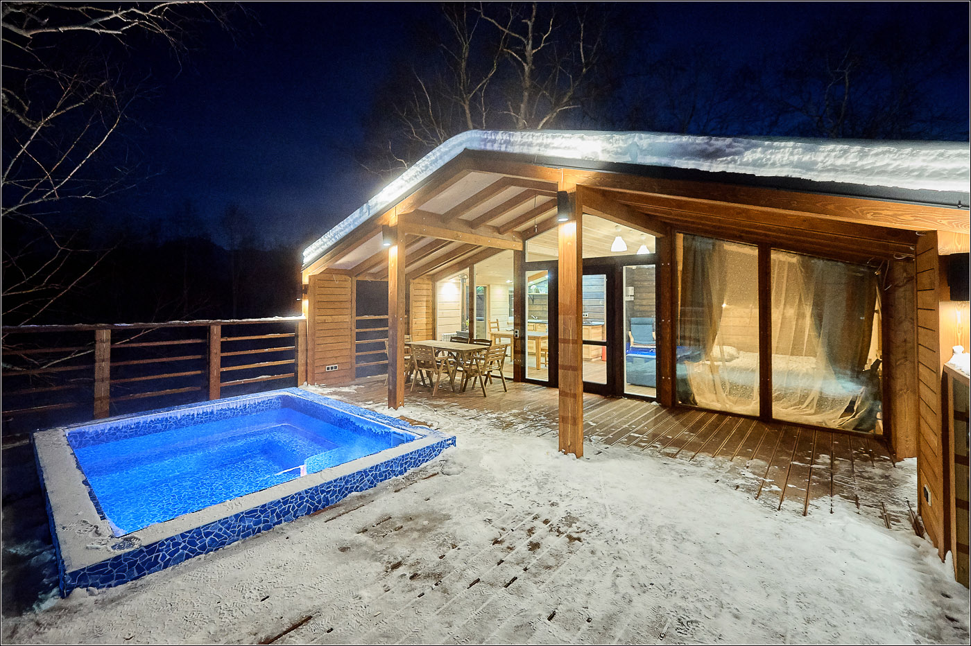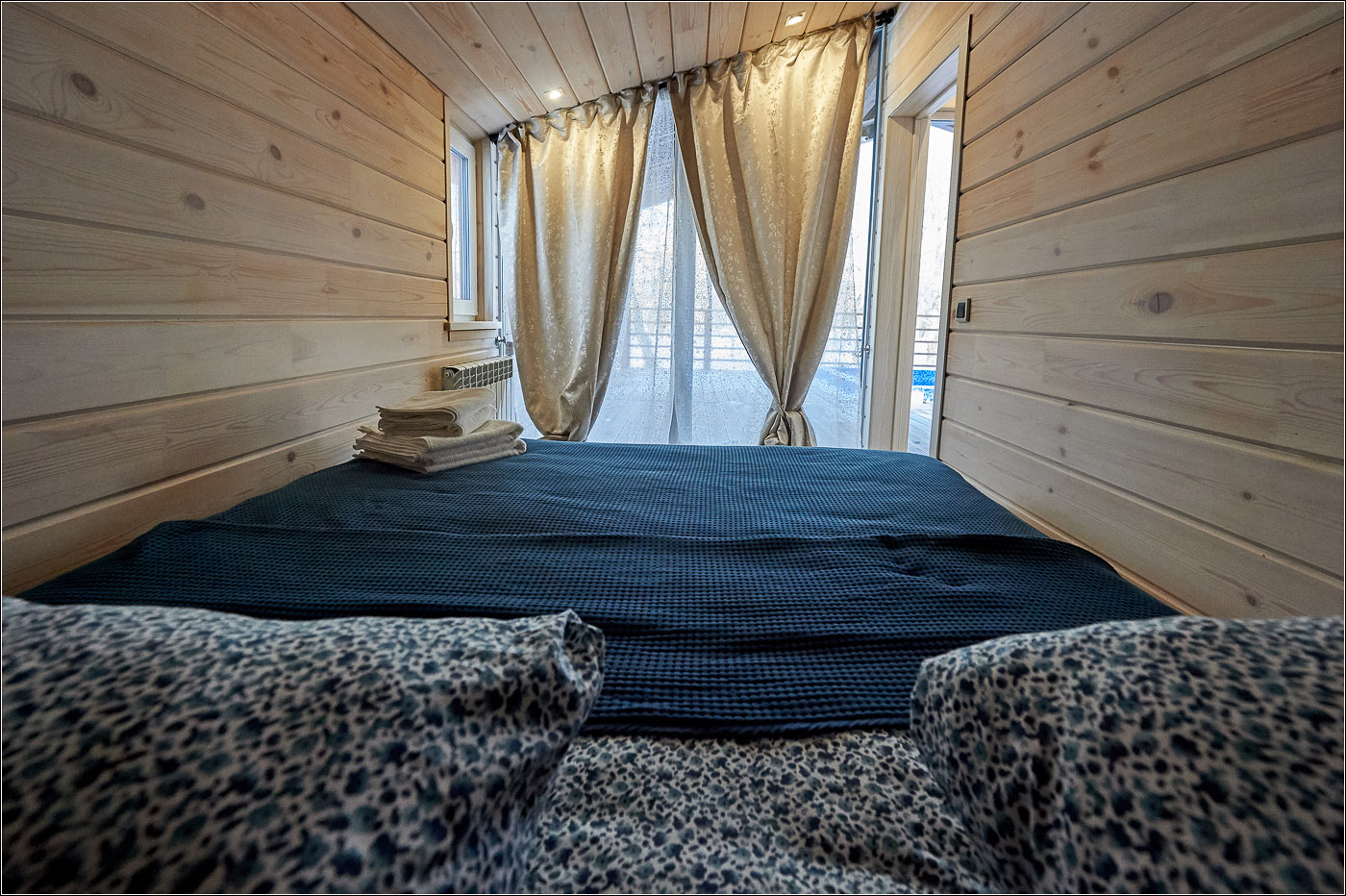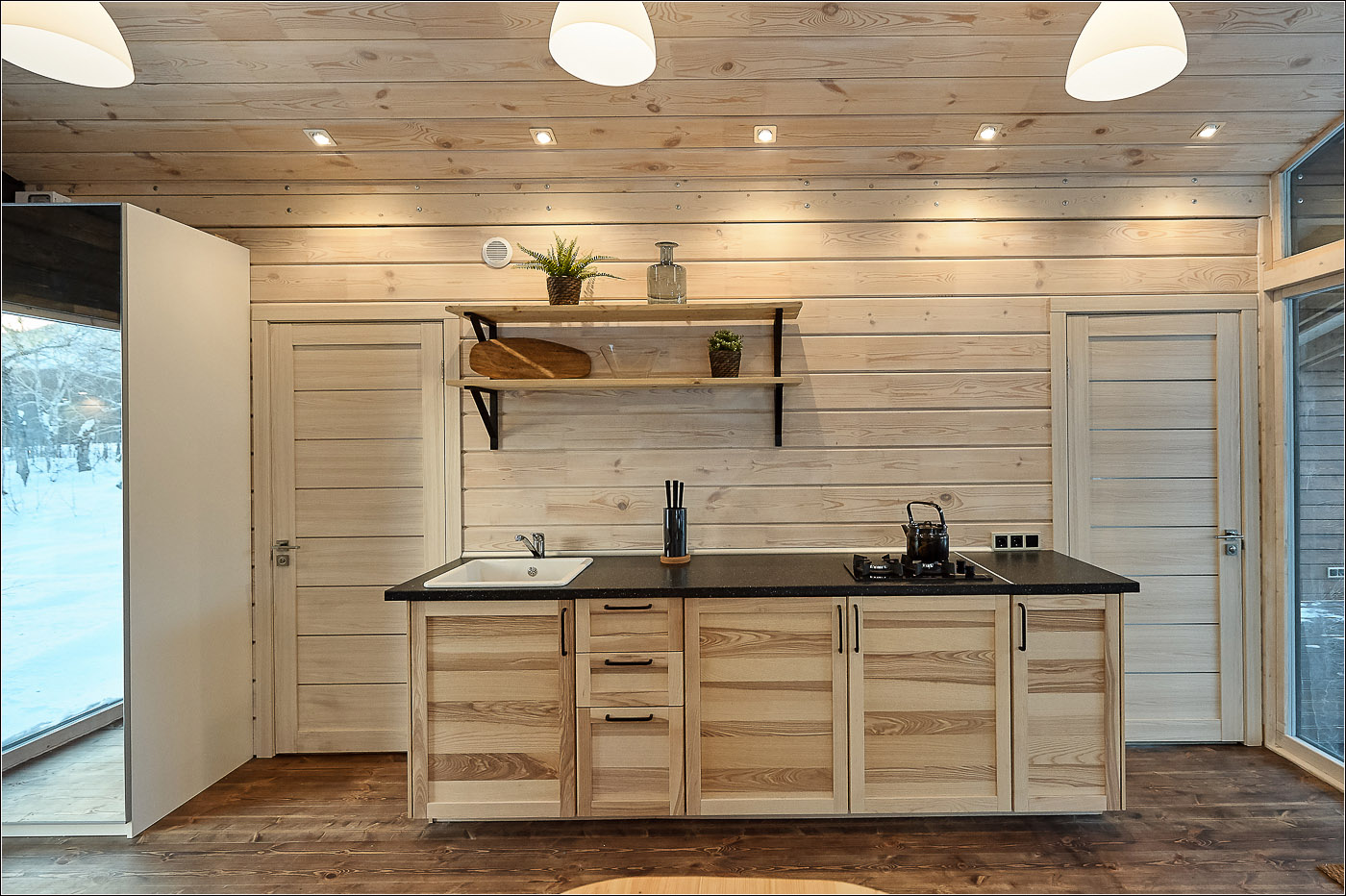 小木屋面积为 45 平方米,最多可容纳 6 位客人。 Forest Lodge所有小木屋的设计基础都是“轻质极简主义”的内饰和功能,这间小木屋也不例外。 天然木材、绿化、带用餐岛的设备齐全的厨房和起居区的软垫家具。 整个房子的全景窗户让您可以欣赏堪察加半岛的自然美景。 大露台有自己的小游泳池和桌椅。