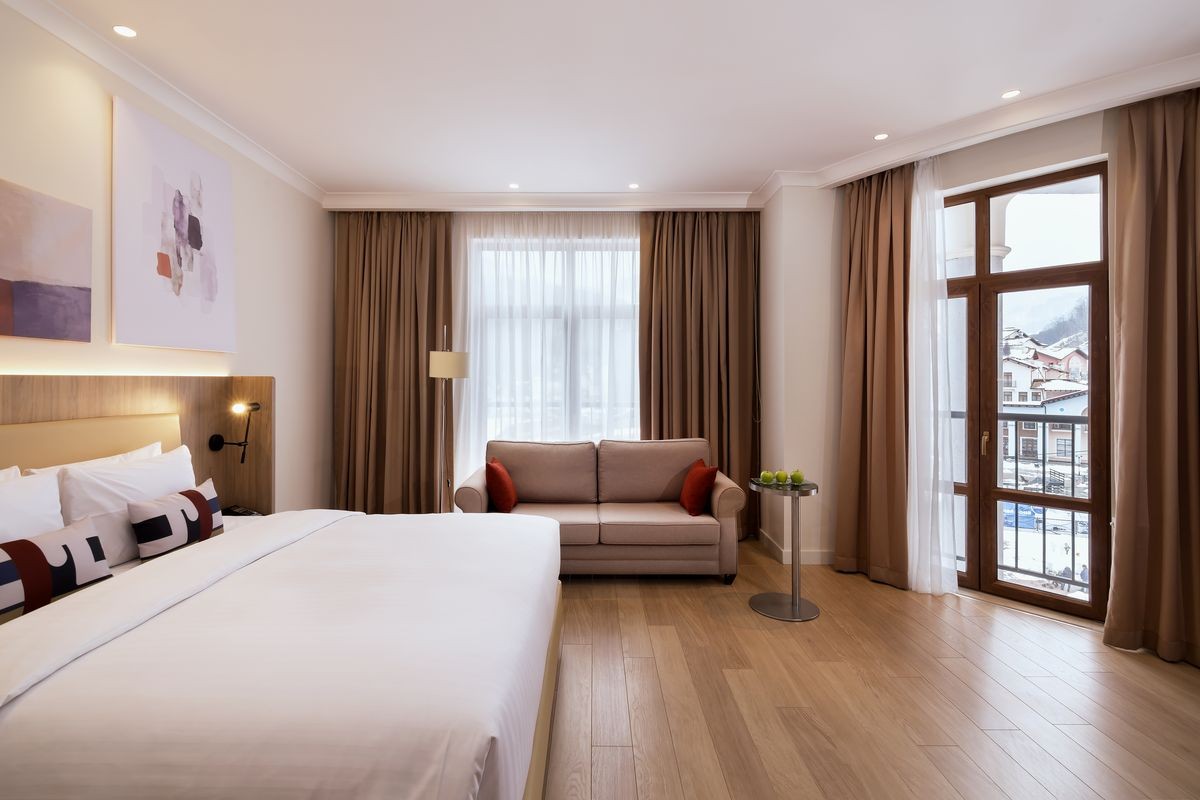 宽敞的选择结合了功能性和有趣的设计。 酒店区设有 1 张特大号床。 在平板电视上观看您喜爱的电影将会很方便。 您将能够在特别指定的区域工作。 房间设有阳台和露台。 从窗户可以看到美丽的山景。 有一个茶和咖啡冲泡站。 洗澡必备的化妆品、浴衣、拖鞋都有。 有一个迷你吧。 面积43平方米。 米