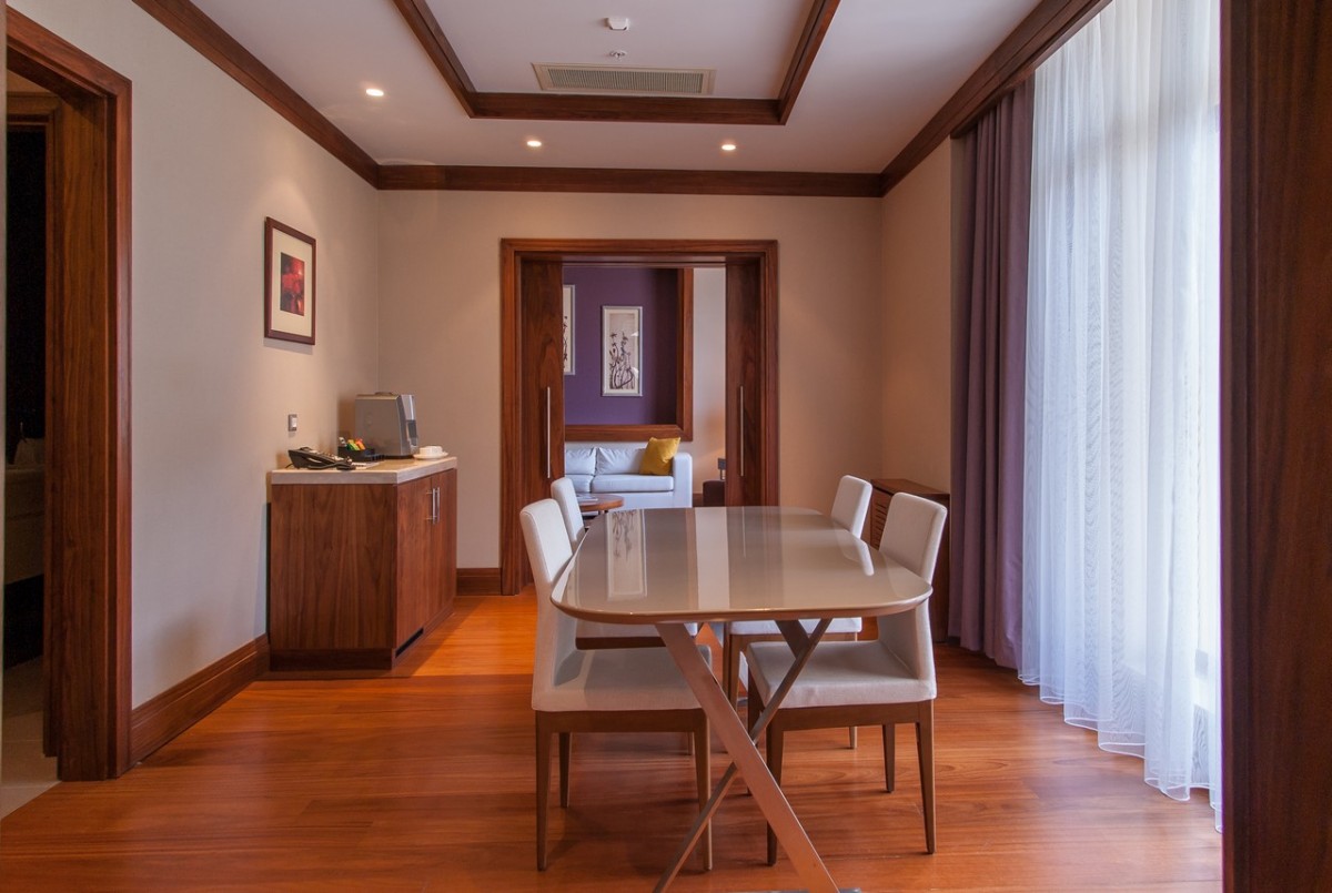 总面积82平方米。 两间房的选择可欣赏酒店庭院的景色。 阳台配有躺椅和桌子。 卧室配有一张大双人床。 客厅里有一个壁炉,给人一种特别舒适的气氛。 有一个用餐区。 浴室设有按摩浴缸。 宽敞的更衣室可容纳您的所有物品。 在现代电视上观看您喜爱的电影将会很方便。