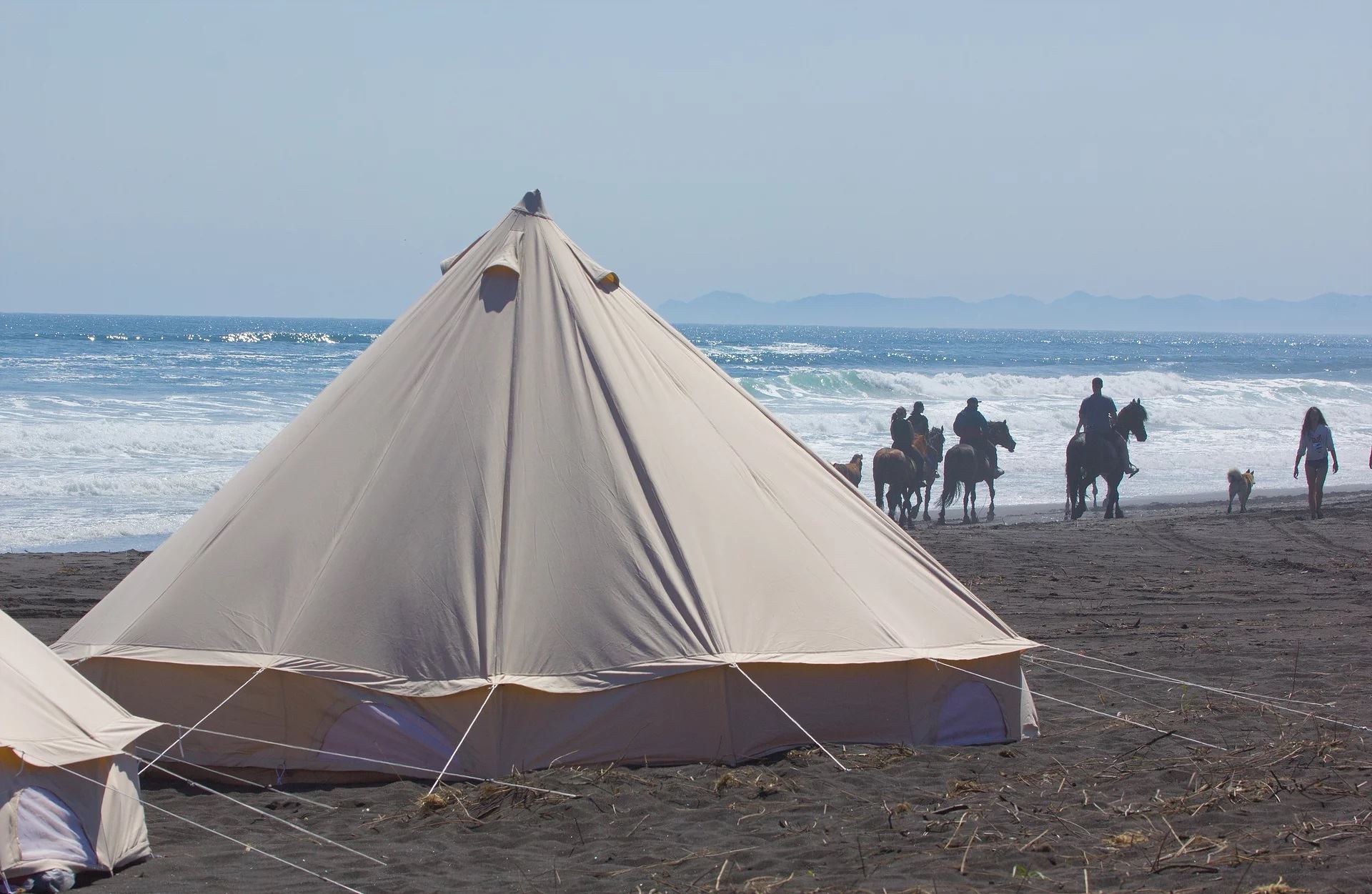 最大限度地接近自然和住宿方式并不意味着客人必须忍受露营生活的不便。 豪华露营的设计更多的是一种风格化,让您沉浸在浪漫的氛围中,而综合体拥有所有必要的基础设施。 在独立的休息帐篷里,您可以坐在柔软的沙发上,享受壁炉的温暖,玩棋盘游戏,度过一个愉快的夜晚。 还有投影仪可以看电影。 酒店还设有一间帐篷餐厅,提供丰盛的当地美食。 忙碌了一天后,您可以在桑拿浴室放松身心,俯瞰海滩和一望无际的海洋。 晒完太阳后,您可以跳入海浪中,这是一次难忘的经历! 晚上,您可以聚集在公共火坑旁,讨论自己的情绪,欣赏一望无际的星空。