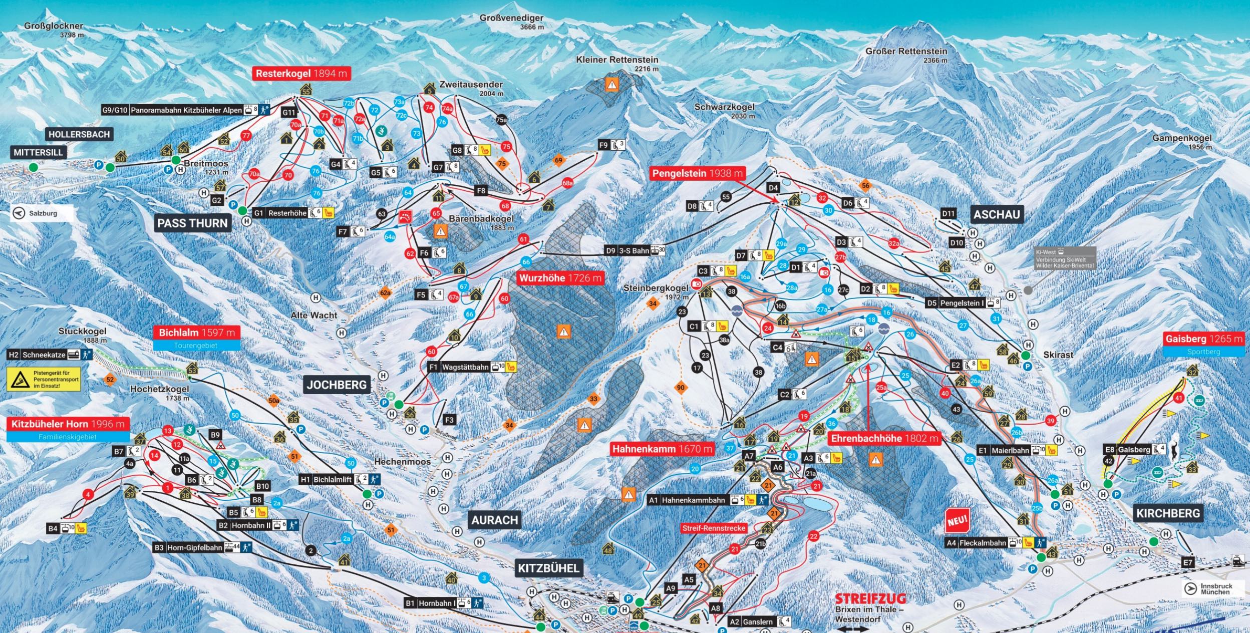 对于个人课程,您可以选择下面地图上显示的任何地点 - Skischule Kirchberg 校舍附近山上的集合点已在您预订的地图上标出。